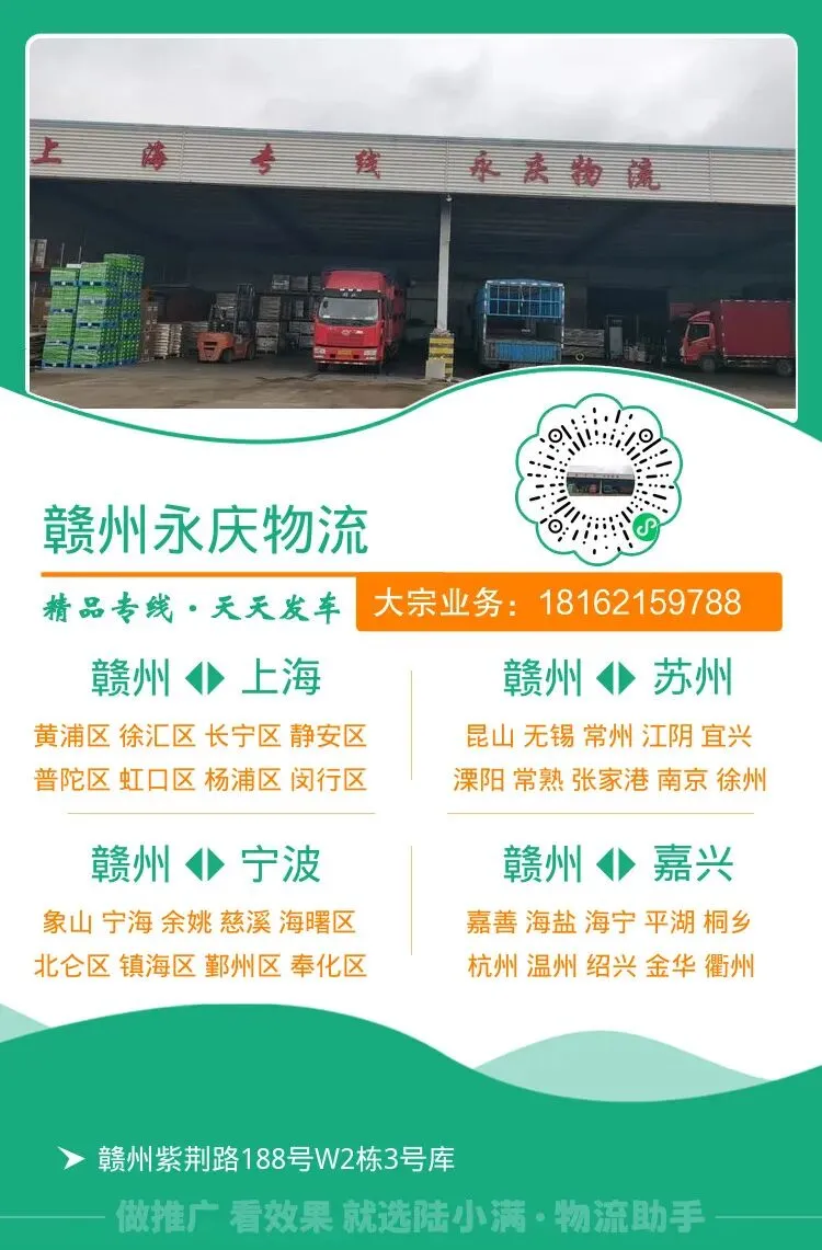 【主营线路】赣州到嘉兴 上海 苏州 宁波物流专线