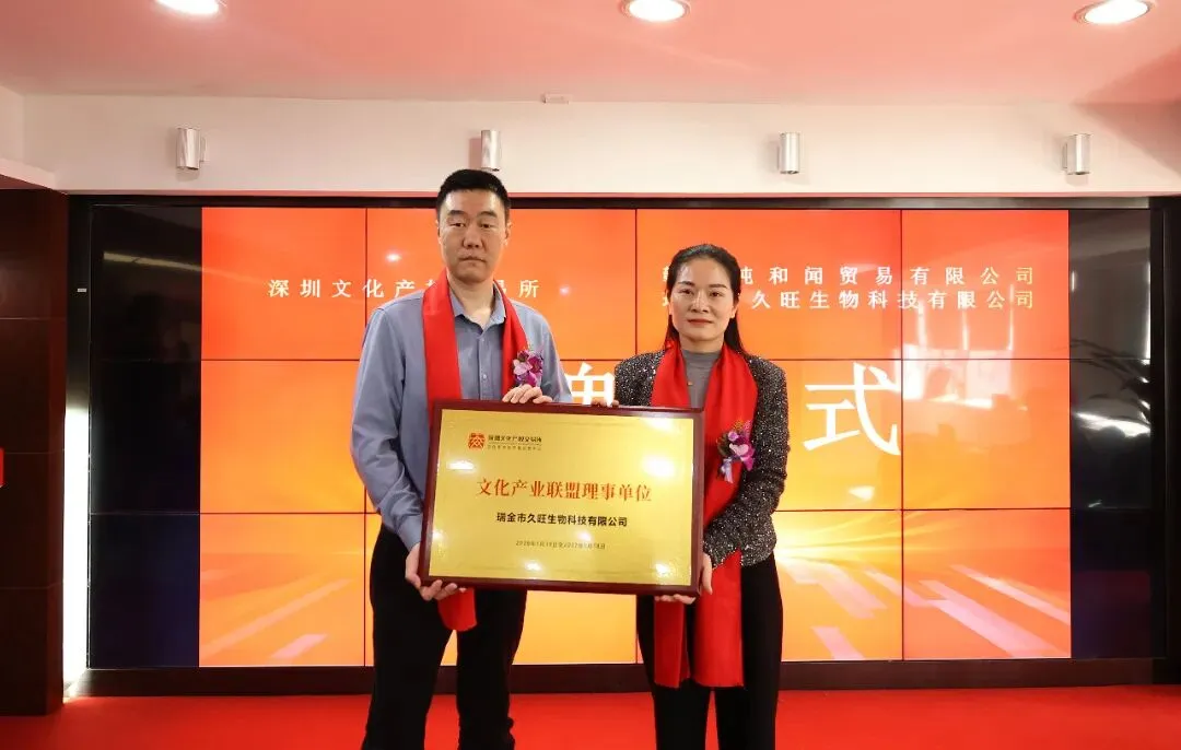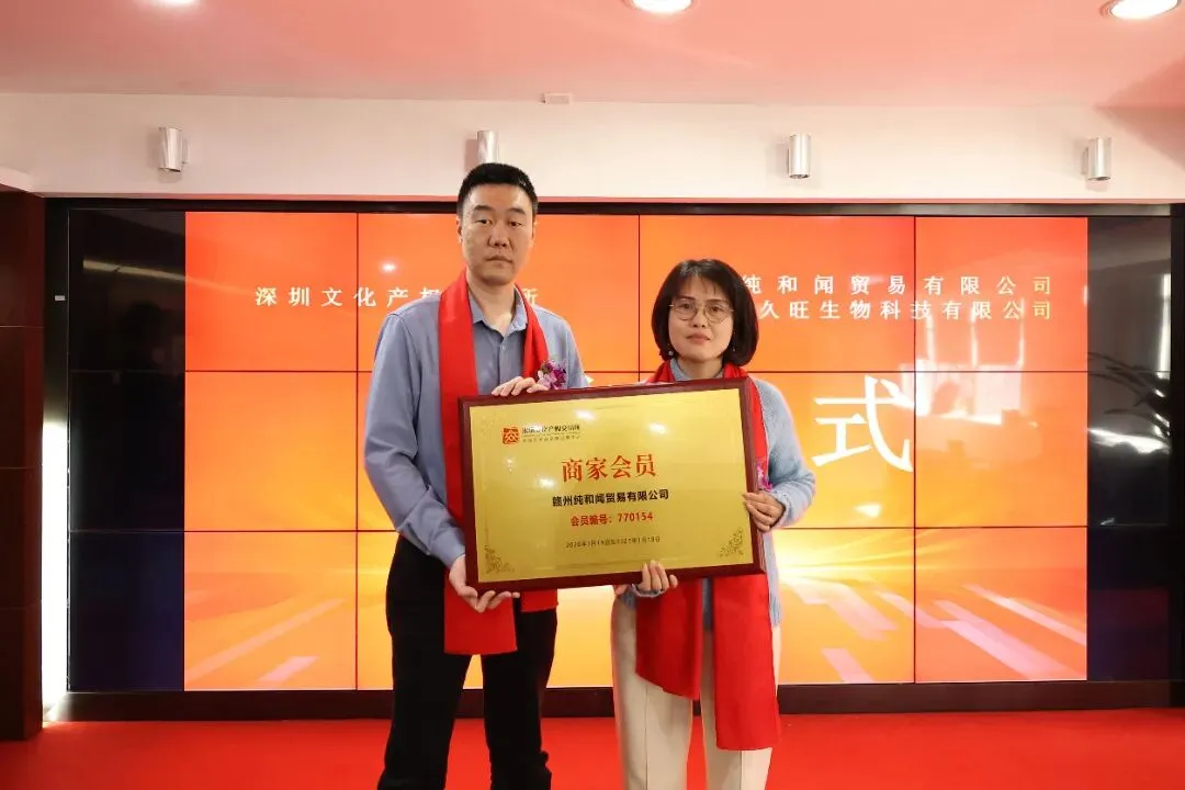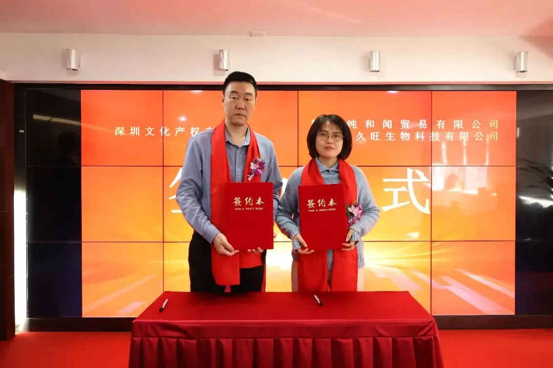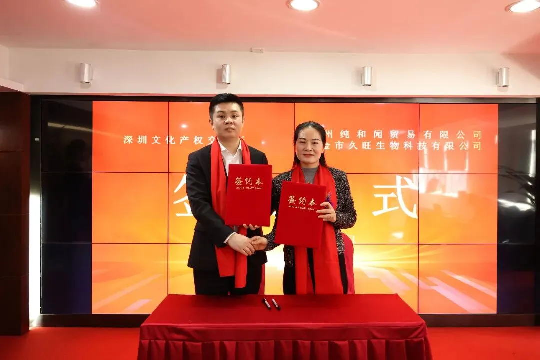2026年1月19日,深圳文化产权交易所与赣州纯和闻贸易有限公司、瑞金市久旺生物科技有限公司在深圳文交所六楼会议厅成功举行签约授牌仪式。深圳文化产权交易所融合运营中心总监史柳,深圳文交所文化艺术品交易运营中心副总经理钟哲,赣州纯和闻贸易有限公司总经理钟美华、副总经理王秀云,瑞金市久旺生物科技有限公司总经理宋梅林、副总经理宋逸明及相关负责人员共同出席本次仪式。