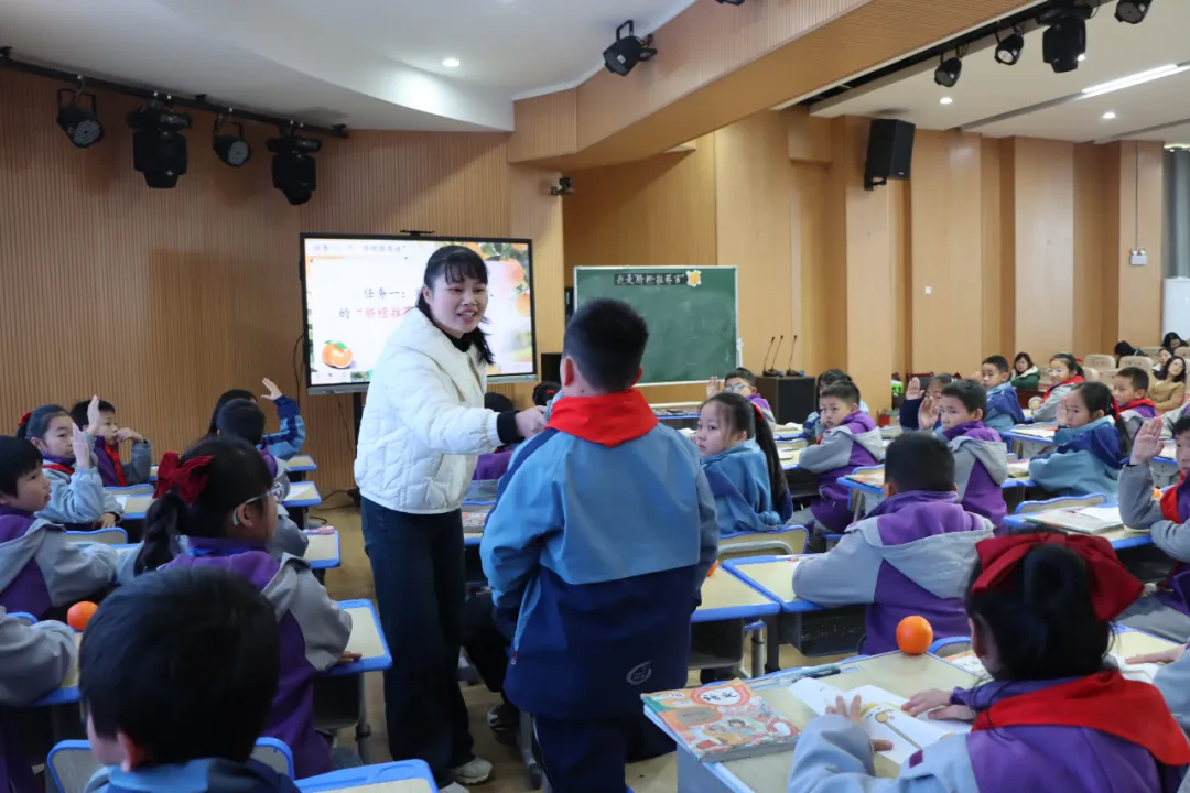 武陵小学王婷老师执教《我是脐橙“探秘家”》,以认识赣南脐橙为探究核心,聚焦“提问策略”“书信习作”两大语文核心技能,培养学生的问题意识与表达能力,在童真互动中让学生读懂家乡特产背后的文化故事。