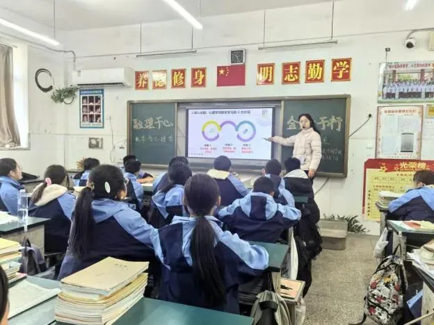 活动在热身游戏“雨点变奏曲” 中拉开序幕。随着指令响起,拍打膝盖、鼓掌、跺脚声交织,快速活跃了课堂氛围,营造出温暖的集体感。核心教学环节中,王老师精准融合心理学与数学知识点:针对全等证明畏难问题,传授“目标拆解法”,将复杂题目拆解为三步;针对分式运算粗心、速度差异,引入“认知风格定位”,为不同类型学生提供适配方法。活动尾声,学生填写学习心理方案记录表,写下具体行动计划。曾畏惧几何的学生重拾信心,坦言找到学习方法与心态。