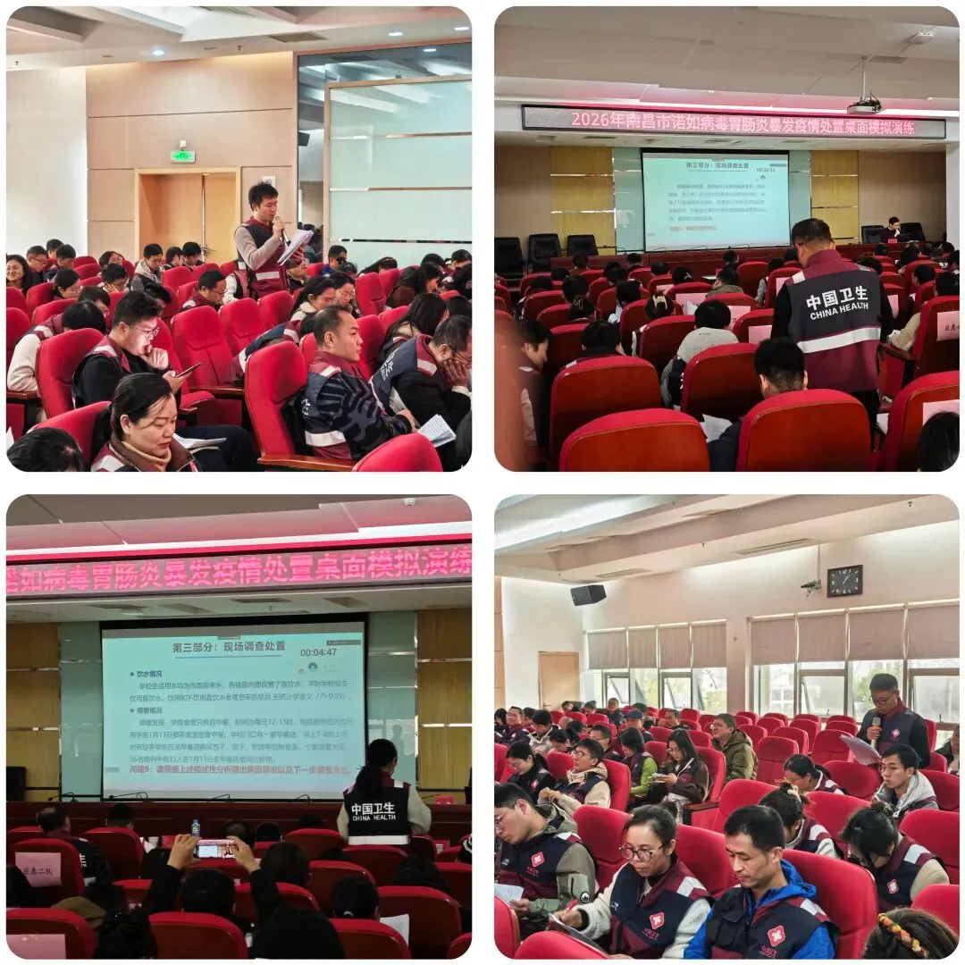 为有效应对冬春季诺如疫情高发态势,全面检验全市应急处置体系实战能力,1月16日,南昌市疾控中心(市卫健执法局)组织开展2026年诺如病毒胃肠炎暴发疫情处置桌面模拟演练。