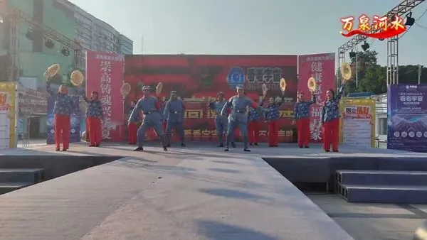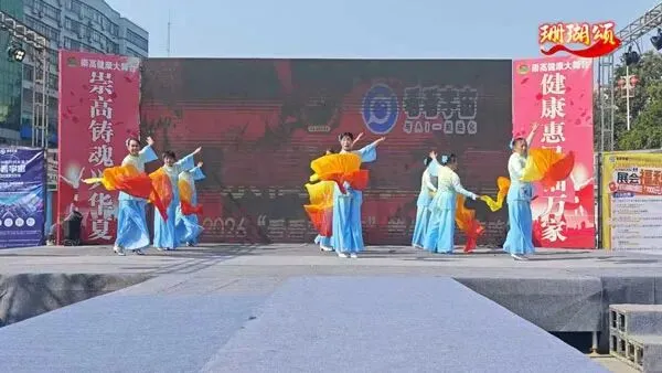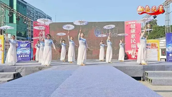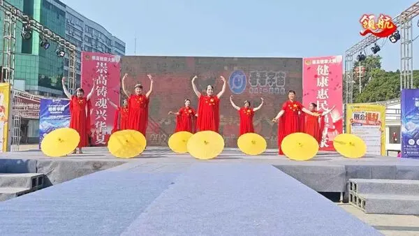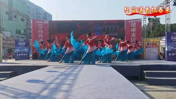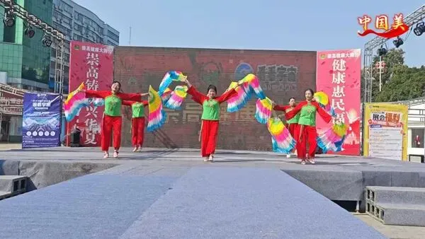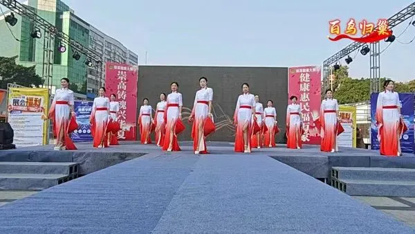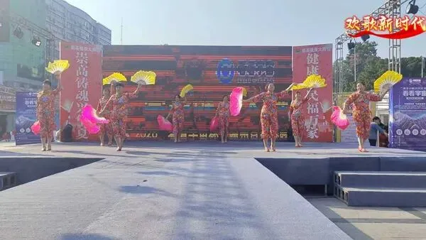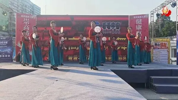 一群身着红衫绿裙的舞者手持团扇,舞步轻盈、扇影翻飞。古典韵味十足的编排,把东方女性的柔美与优雅展现得淋漓尽致,仿佛一幅流动的国风画卷。