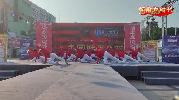 瑜伽的舒展与团队的默契配合,既展现了健康之美,也呼应了 “领航新时代” 的主题,传递积极向上的生活态度。