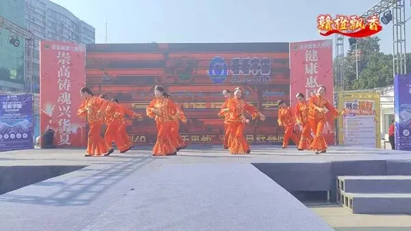 喜庆橙衣舞者用活泼动作,还原赣州脐橙丰收时的热闹场景。