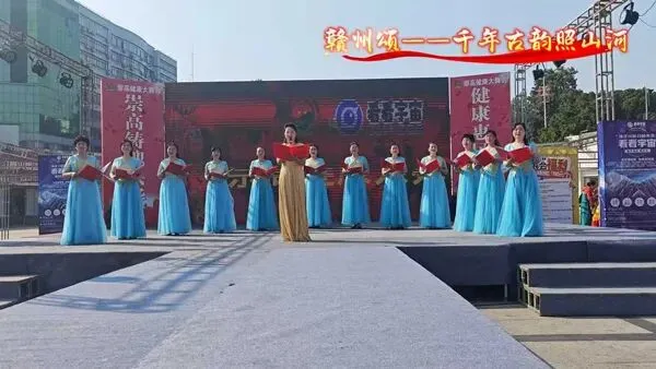 金裙领诵搭配蓝裙合诵,用悠扬歌声礼赞赣州千年宋城的古韵风华。