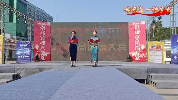 两位旗袍装的朗诵者,用饱含深情的声音诉说《母亲是一种岁月》里的母爱绵长。