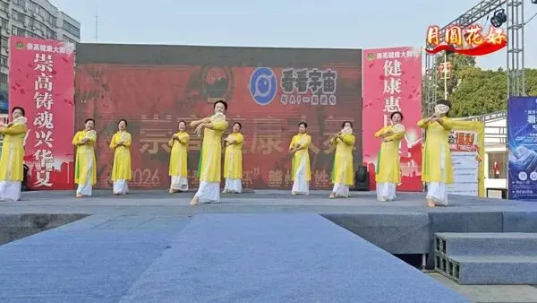 明黄舞裙的舞者们以柔美的古典舞演绎《月圆花好》,舞步轻盈间尽显江南女子的温婉与诗意。
