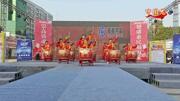红衣舞者们擂响大鼓,用气势磅礴的鼓舞《中国龙》展现中华民族的昂扬气概,鼓点铿锵震撼全场。