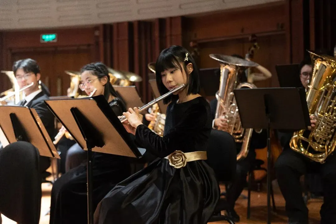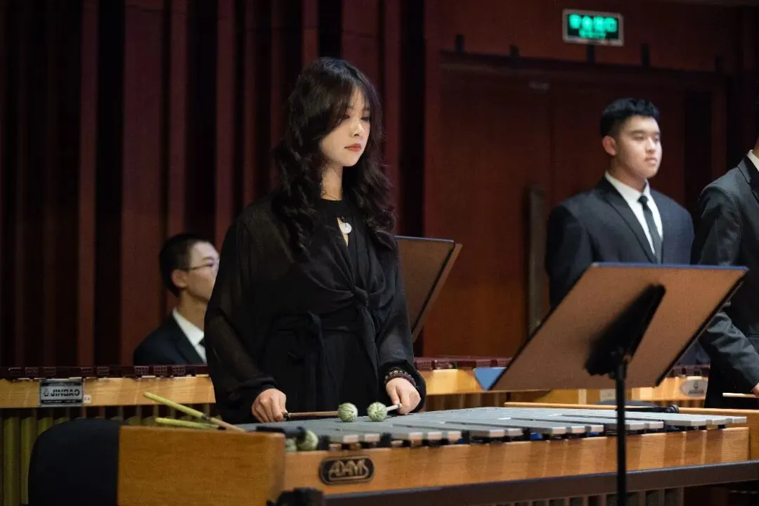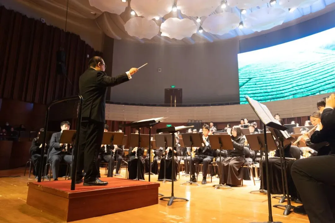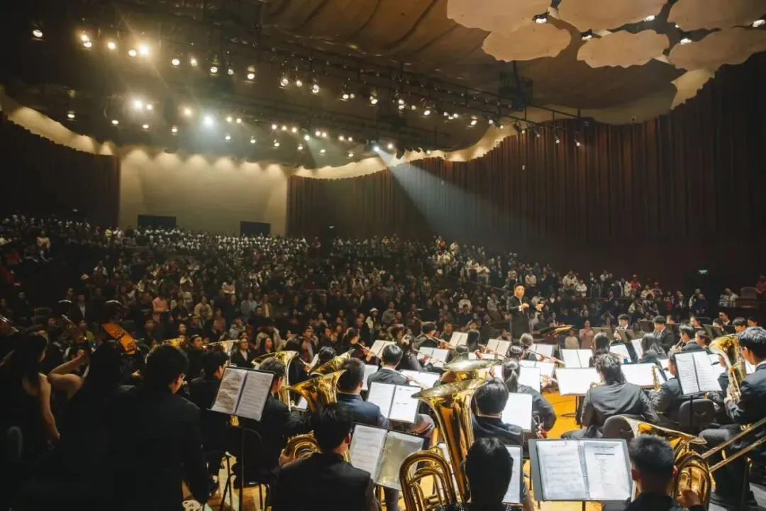 下半场奏响红色主旋律,以一系列经典军歌贯穿红色血脉,彰显时代精神,成为一堂生动深刻的集体爱国主义教育思政课。《人民军队忠于党》彰显军魂忠诚,《在太行山上》重现军民抗日壮阔图景,《中国军魂》诠释“狭路相逢勇者胜”的精神内核,《打靶归来》洋溢革命乐观主义精神,《钢铁洪流进行曲》复刻阅兵盛典震撼,《祖国不会忘记》诉说奉献者的深情告白。终章时分,全体观众起立,伴随星辰管乐团奏响的结束曲《歌唱祖国》,全场歌声与乐声交融、掌声与敬意齐鸣,将音乐会推向情感巅峰,共同祝福伟大祖国繁荣昌盛。曲终意未尽,在全场观众的齐声呼唤下,同学们现场再奏一曲《钢铁洪流进行曲》,音乐会在气势磅礴的乐曲和观众们的热烈掌声中圆满落下帷幕。