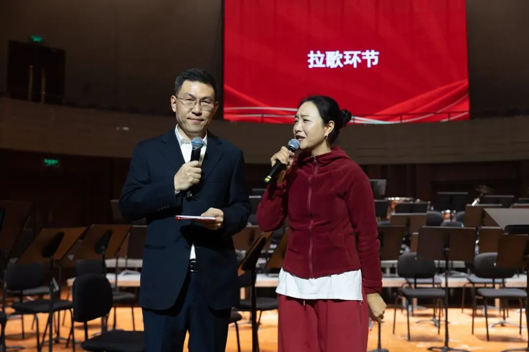 中场拉歌环节,主持人与全场观众热烈互动,大家齐声共唱军歌,嘹亮的歌声响彻音乐厅,现场氛围瞬间被点燃。