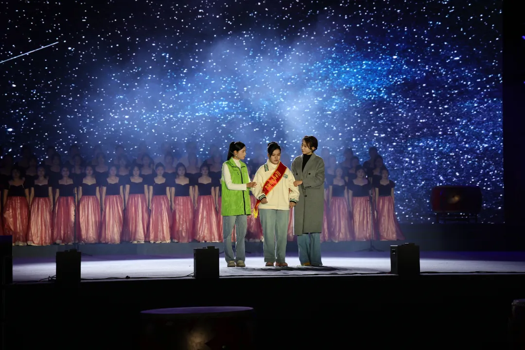 康养系的歌伴舞《书写未来的青春》,舞蹈社的《少女时代》,以及由本届校园十佳歌手联袂献唱的歌曲串烧《童梦拾光·青春回响》,用歌声与舞步串联起从童年到青春的珍贵记忆,描绘了一幅充满无限可能的青春画卷,引发全场共鸣。