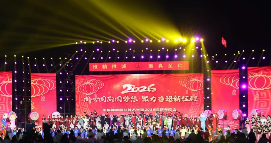 2026年1月9日晚,南昌健康职业技术学院九龙湖校区内灯火辉煌,欢声雷动。以“同心同向同梦想,聚力奋进新征程”为主题的2026年迎新年文艺晚会在这里隆重举行。学院师生欢聚一堂,用精彩的表演、真挚的祝福与满怀的激情,共同辞别旧岁,迎接崭新的丙午马年。