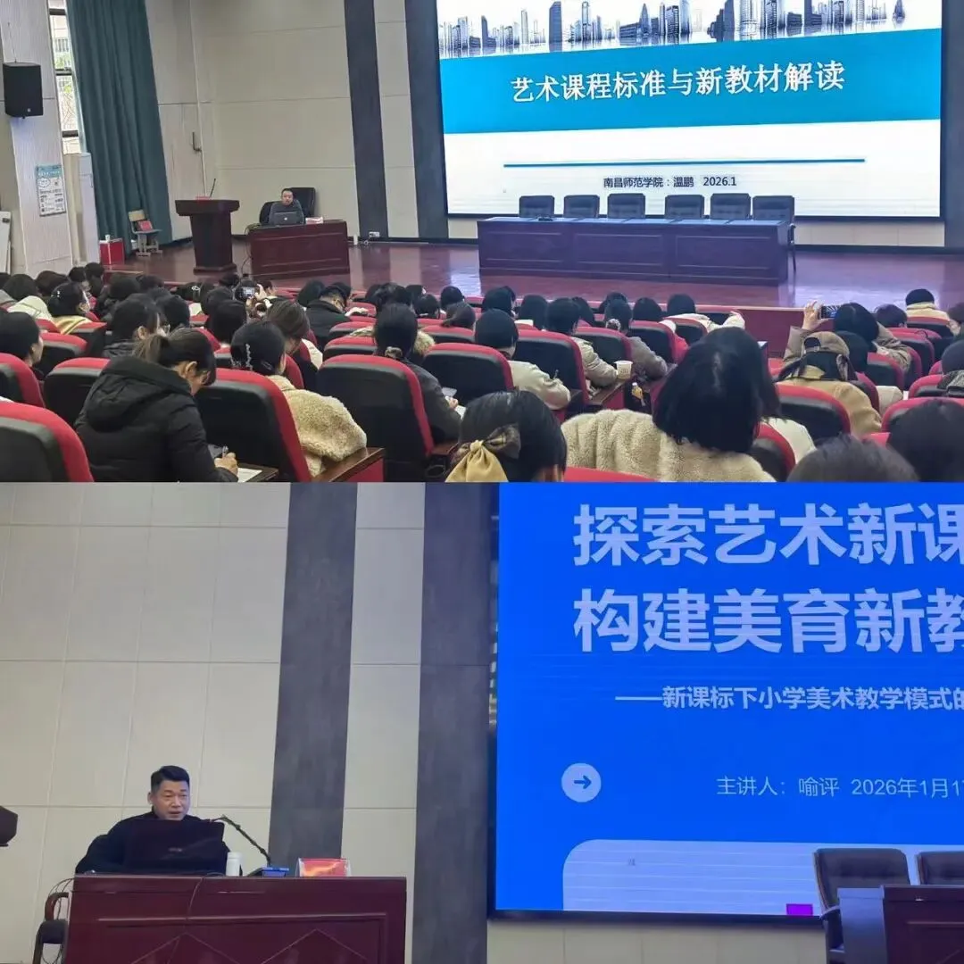 培训环节突出实效导向,授课专家深度融入新课标理念,结合跨界教学典型案例进行分享,引导转岗教师找准原有学科优势与音体美教学的融合切入点。培训采用 “线上 + 线下”结合模式:线上依托江西省智慧教育平台,整合优质教学视频、电子教材等资源,支持教师利用碎片化时间开展自主研习;线下培训坚持理论与实践深度融合的原则,通过集中授课夯实理论基础,借助模拟课堂、听课评课等实操活动强化教学技能,引导教师在沉浸式训练中内化知识、积累经验,切实做到学用结合、知行合一。此次培训有效提升了转岗教师的专业素养与教学能力,为全区义务教育优质均衡发展筑牢了坚实的师资根基。