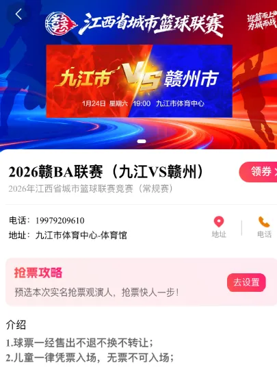 2.选择“赣BA 九江市VS赣州市”赛事(可提前登录,预录好身份信息)