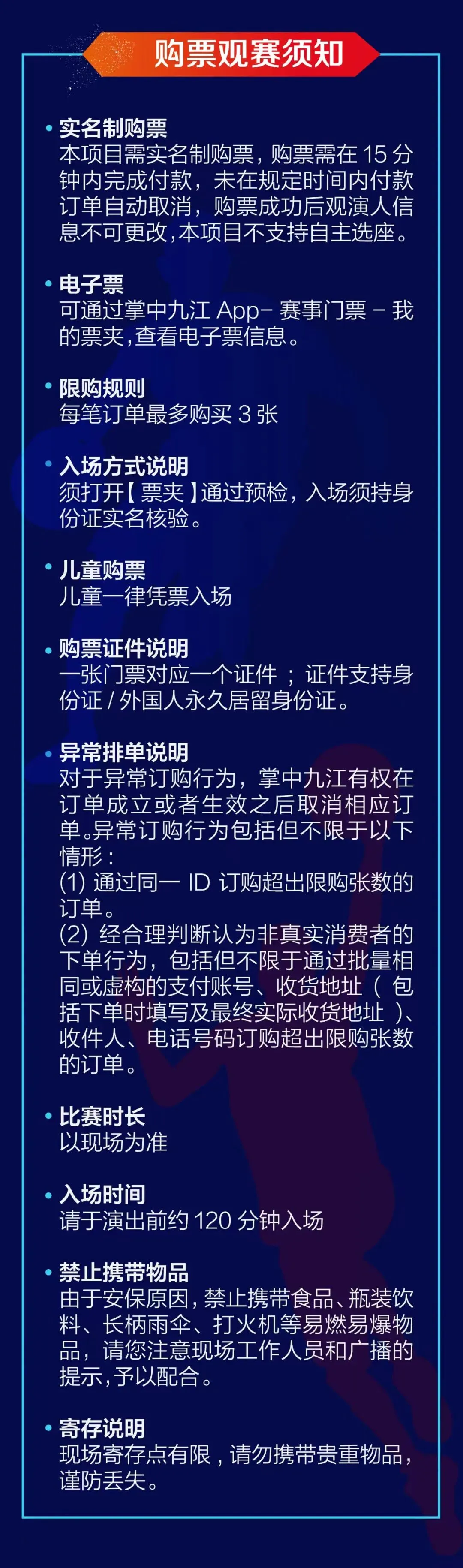 *预计售票火爆,请球迷朋友们务必提前登录“掌中九江App”,预录好身份信息,做好准备。