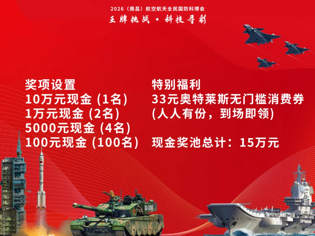 在展馆内找到4个指定国防科技装备展台,完成互动打卡并集齐4枚印章(实体贴纸),即可获得“王牌挑战”抽奖资格。