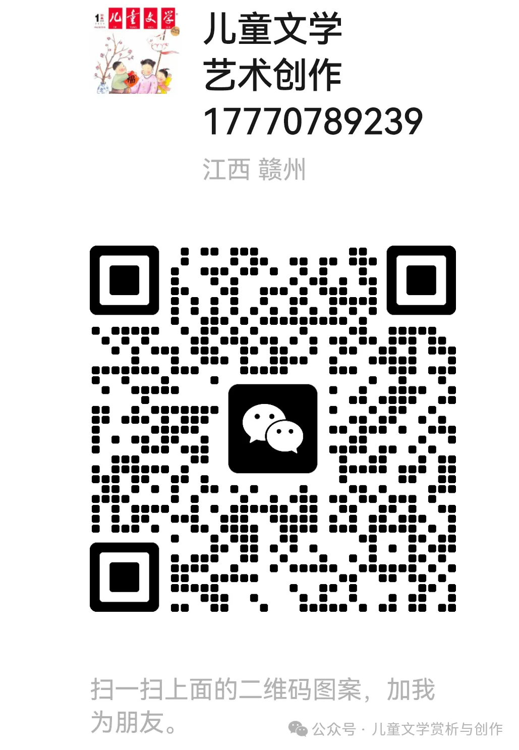 本公众号投稿方法:扫“儿童文学艺术创作”二维码或通过搜索17770789239加微信好友后,发作品word版投稿。作品题目下方附学校(标注好校区)年级、班级、作者姓名及作者三张生活照或艺术照。