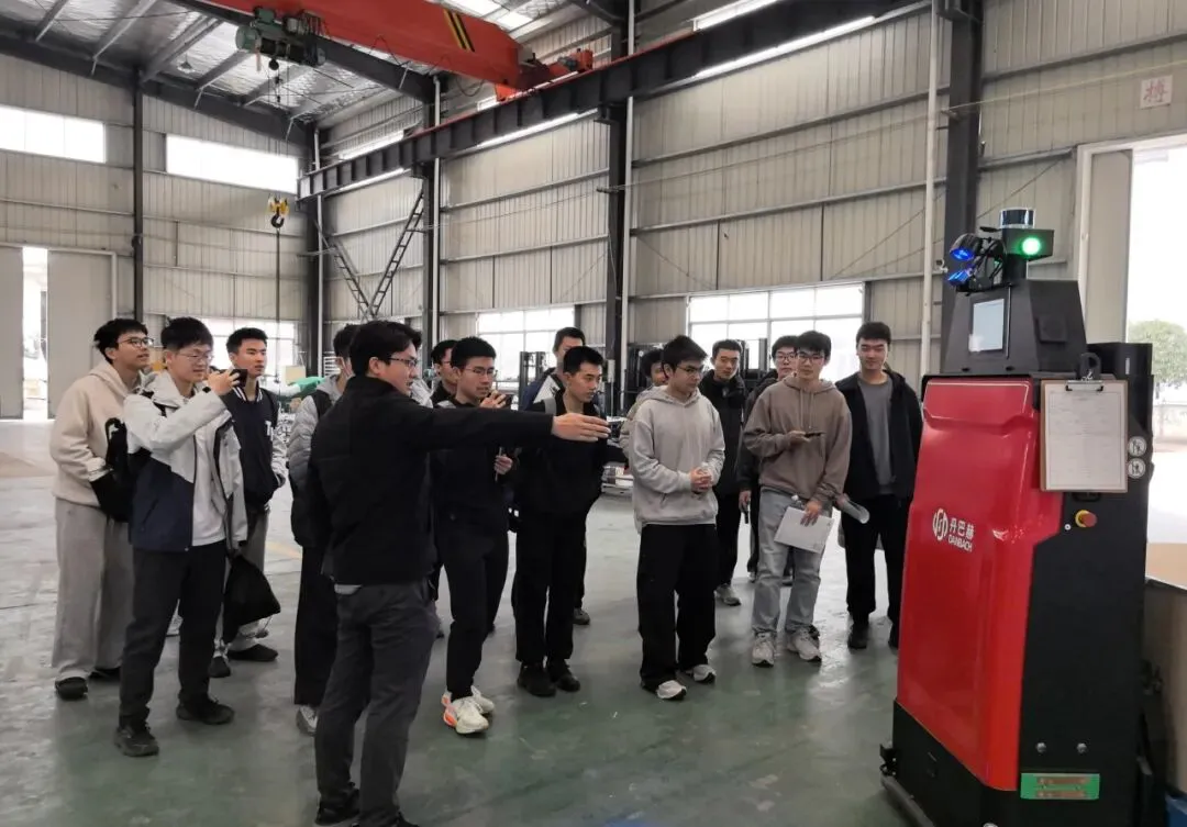 1月16日下午,实践支队首站来到江西丹巴赫机器人股份有限公司,拉开了本次江西实践的调研序幕。作为一家成立于2016年、拥有47项专利的国家级高新技术“专精特新”企业,丹巴赫专注于无人叉车、重载AGV等移动机器人的研发与制造,掌握了从核心运动控制系统到系统集成应用的完整技术链条。