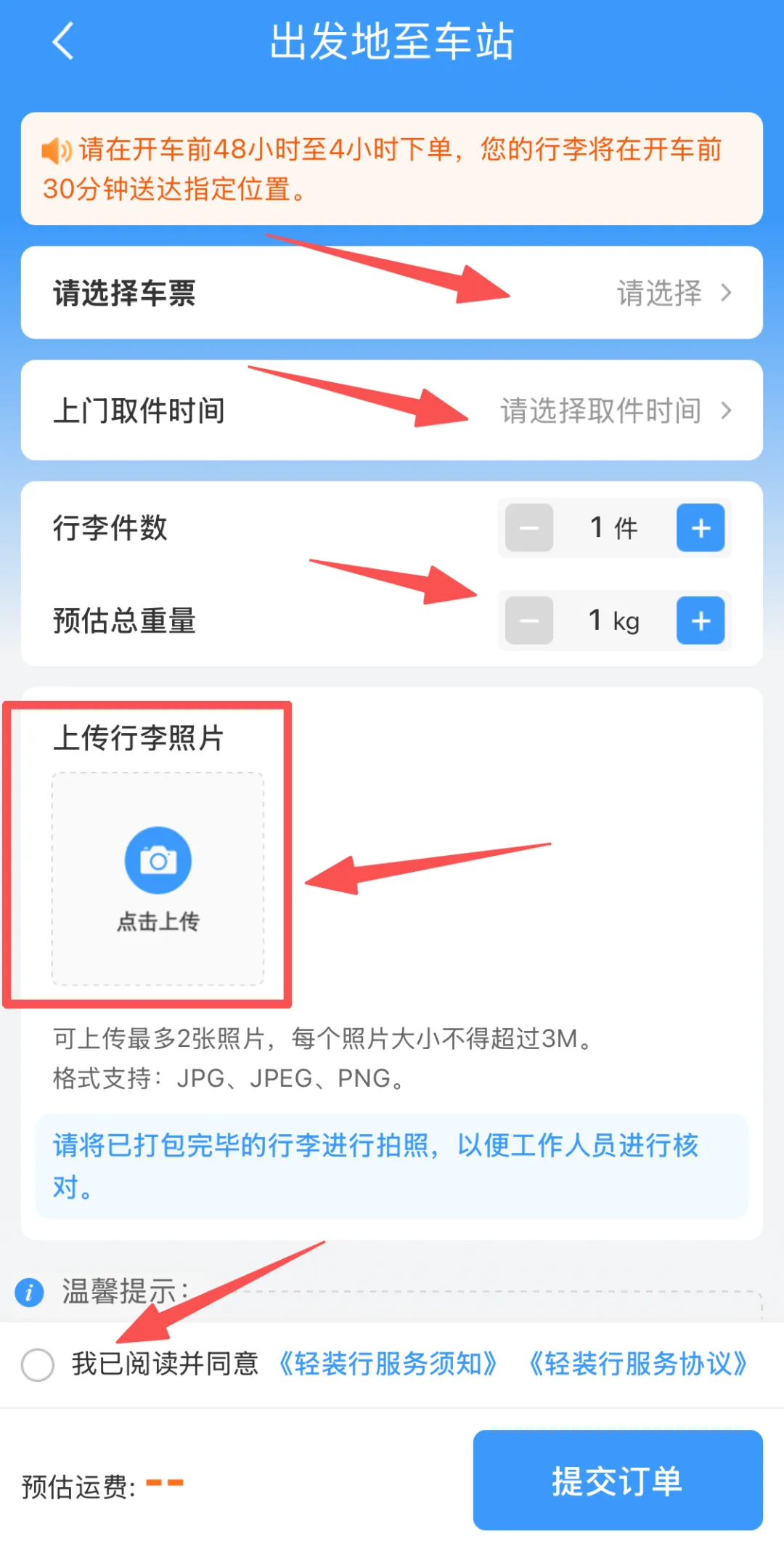 此次“轻装行”服务的试点,已购车票的旅客可通过铁路12306App、微信小程序及中铁快运微信小程序预约“轻装行”服务。旅客在开放预约时间内按要求提交订单,即可享受轻装出行,让旅途体验更加舒适。