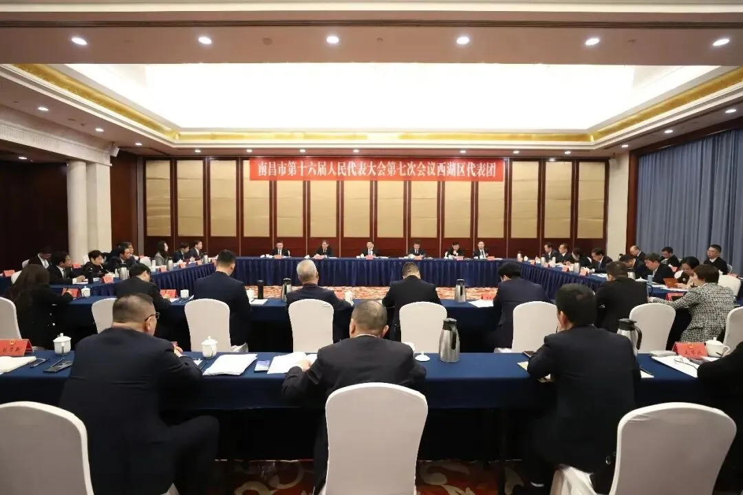 1月19日,南昌市第十六届人大七次会议西湖区代表团在前湖迎宾馆国际会议中心前湖B厅举行第三次、第四次会议。市人大常委会主任李镇发,市委常委、市委统战部部长饶绍清,市人大常委会党组成员、秘书长、办公室主任汪军伟与代表们一起审议了《政府工作报告》,审查“十五五”规划纲要草案,审查计划、预算报告。区委书记陈建军参加讨论并作了发言。区委副书记、区政府区长杨燊,区人大常委会主任闵员根参加会议。