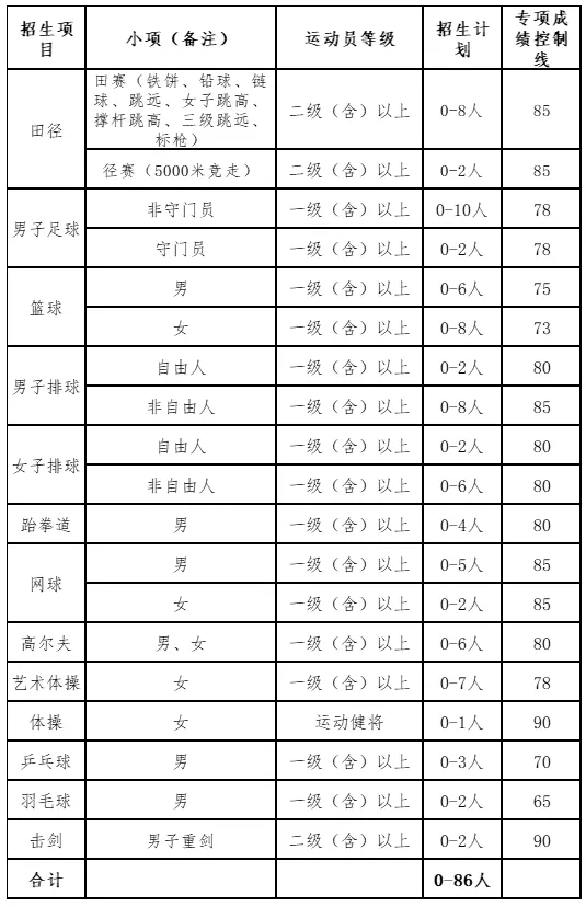 (一)招生计划:86名(不含保送运动员计划)。