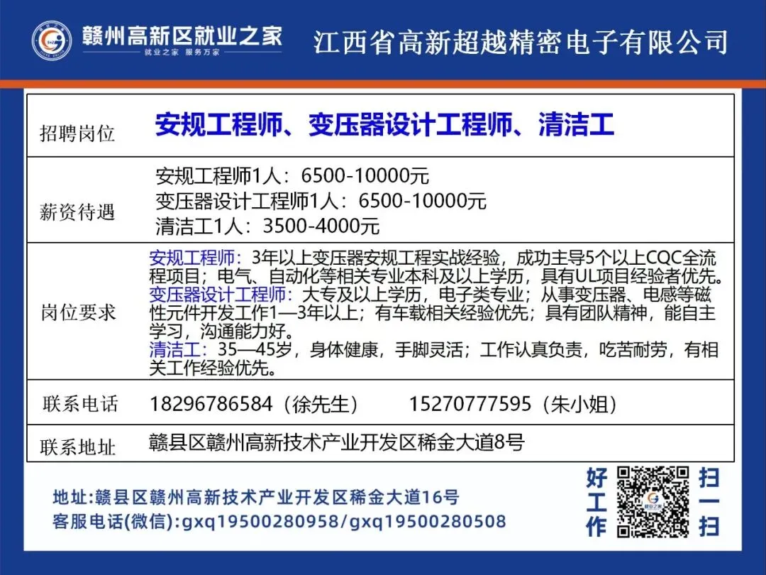 赣州高新区最新招聘岗位公布!