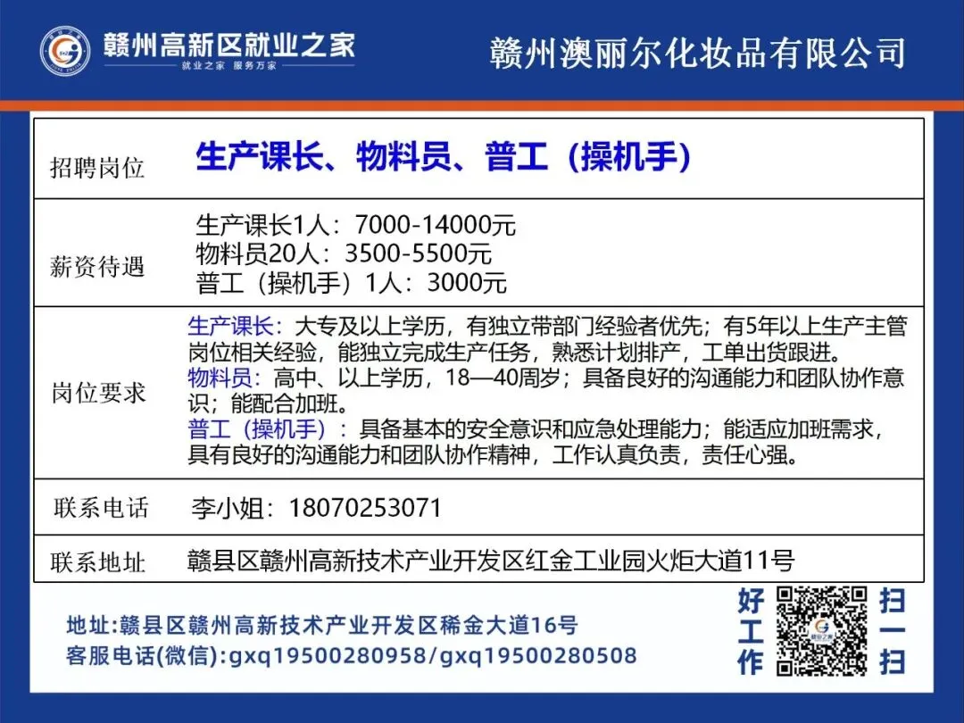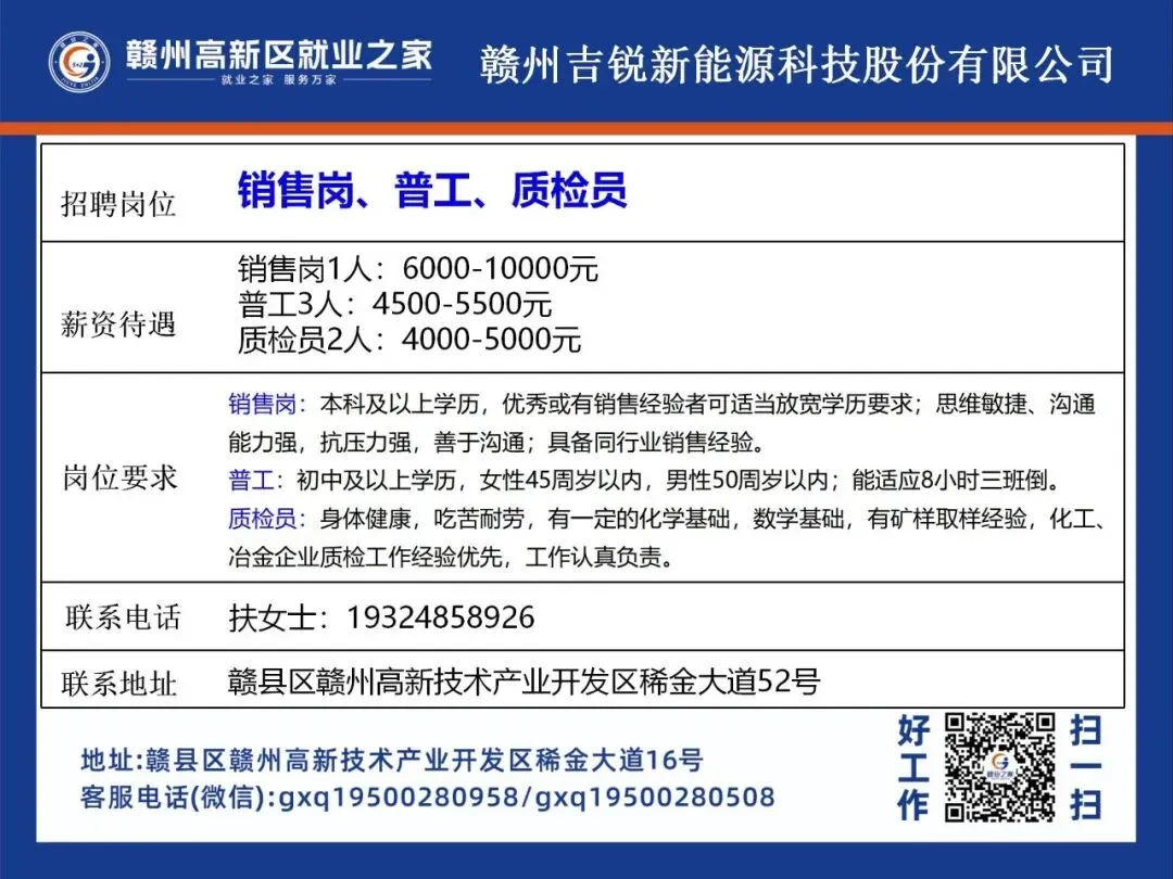来源:赣州高新区就业之家