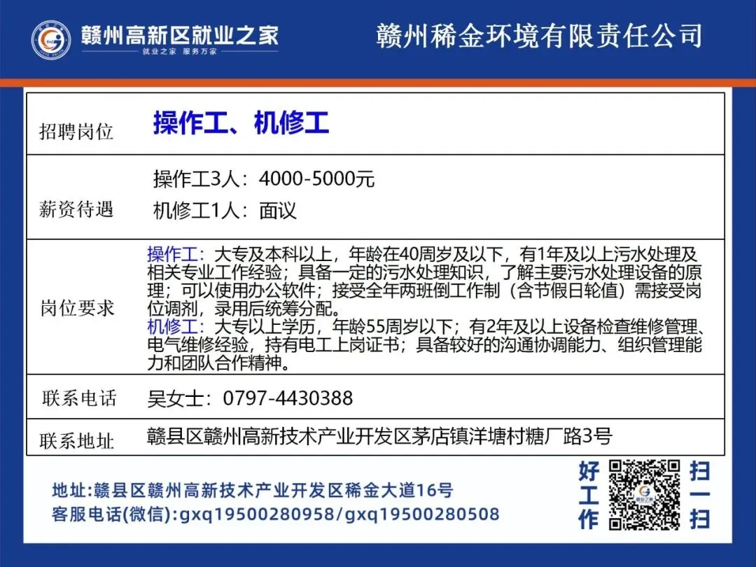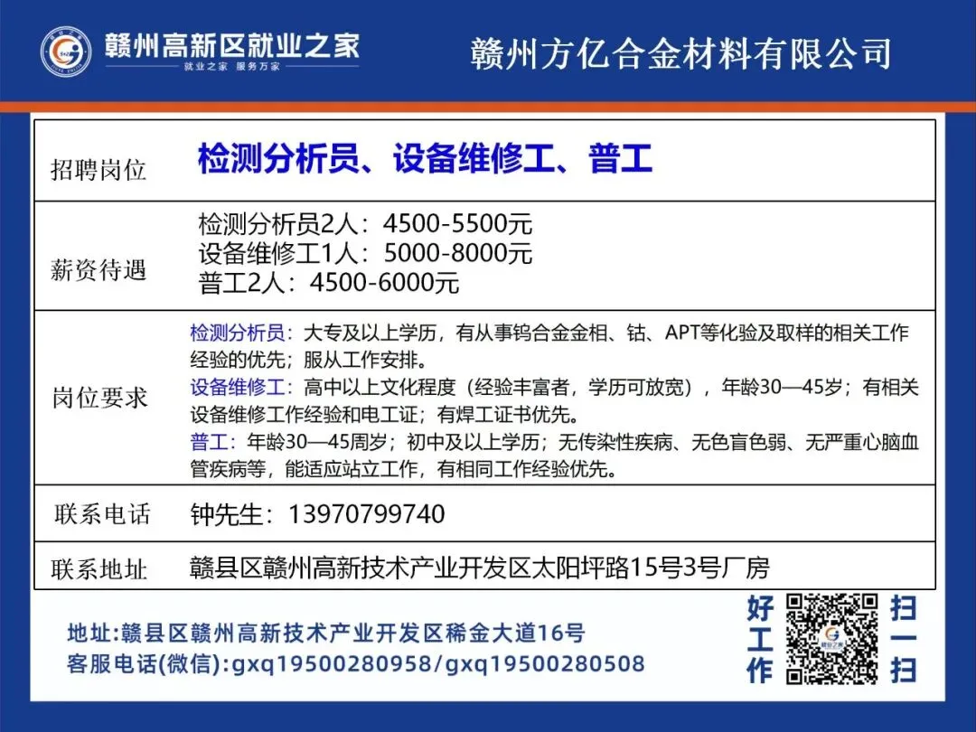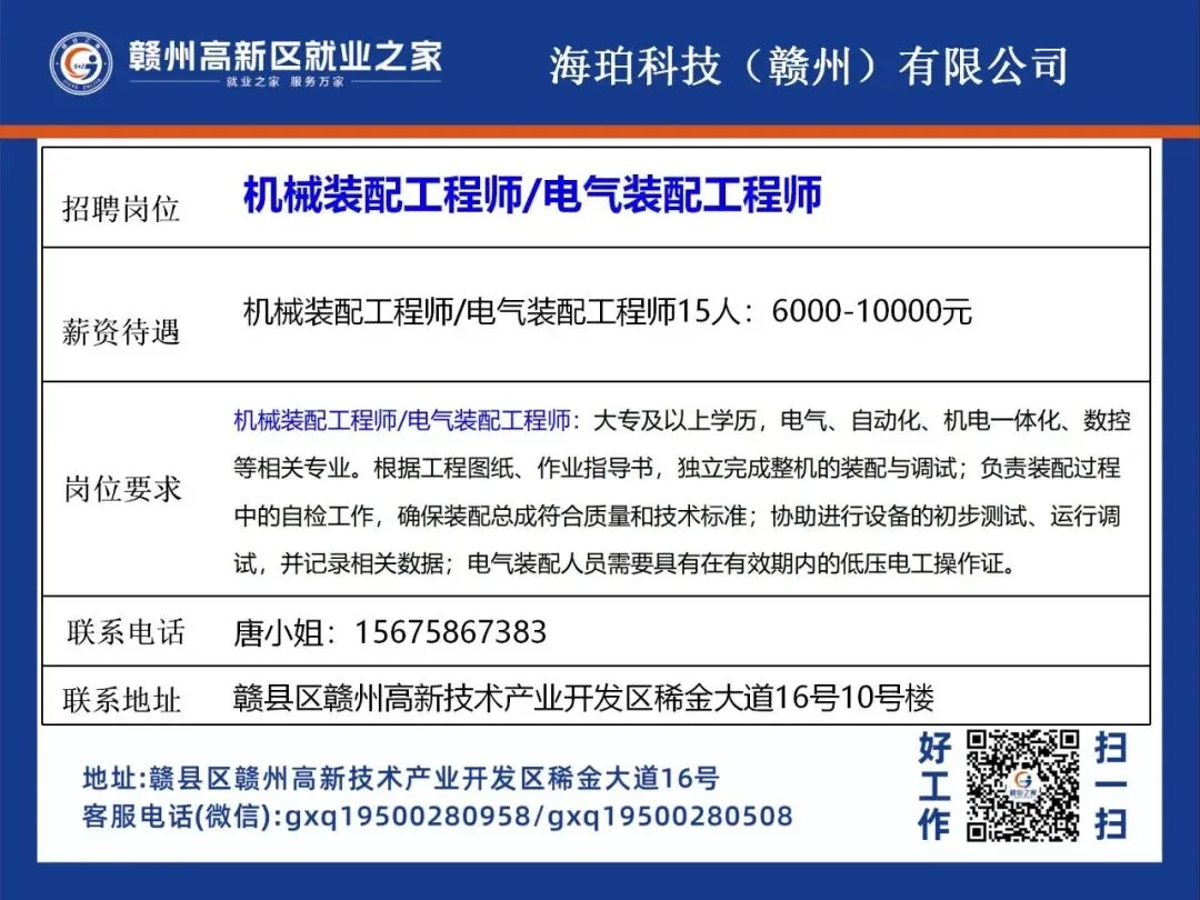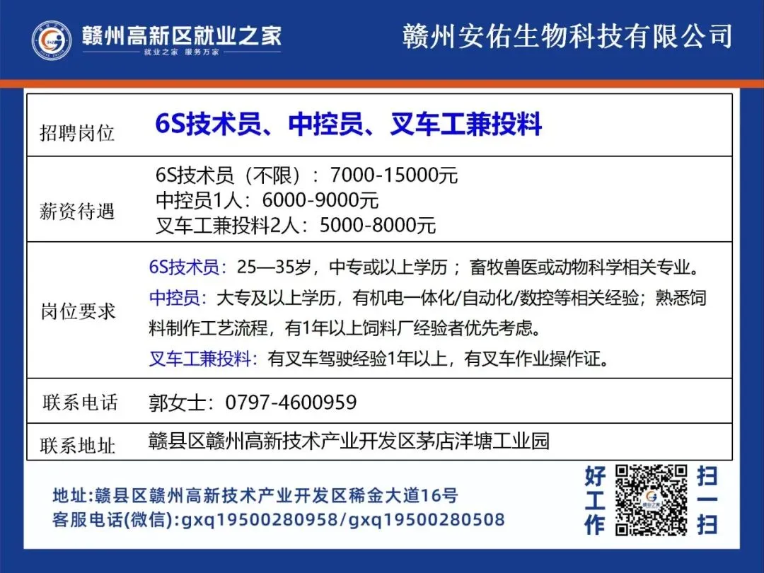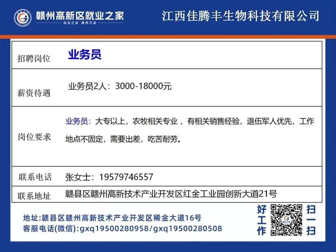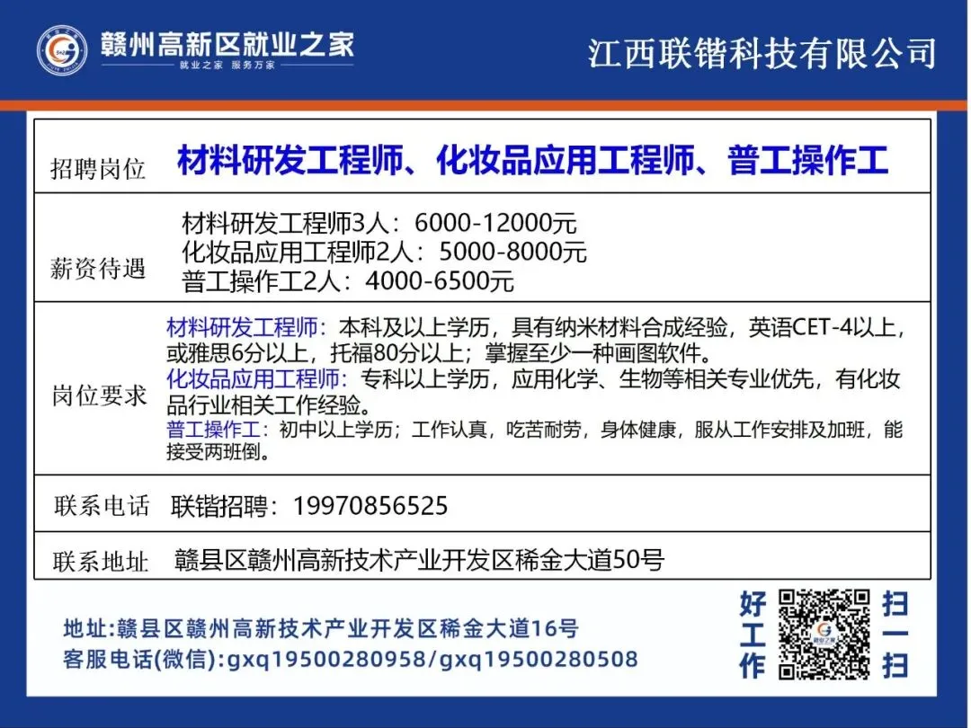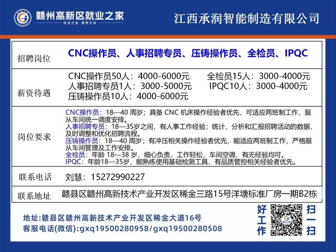 >赣州高新区最新招聘岗位公布!