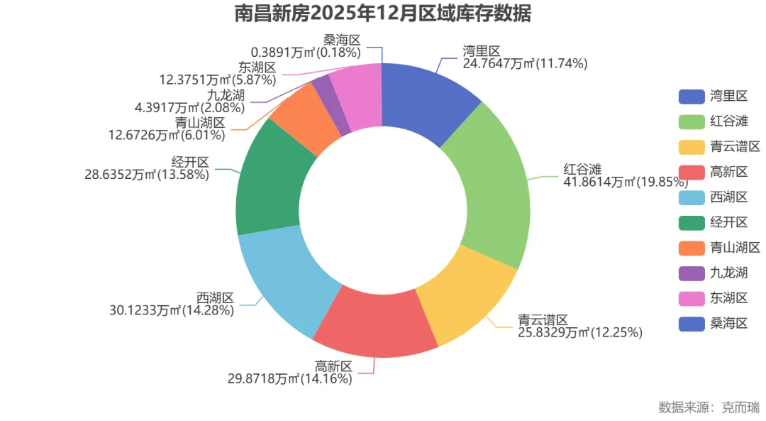 数据来源于克而瑞,显示红谷滩、西湖区、高新区是库存主力区域,但核心区域去化能力也相对更强。