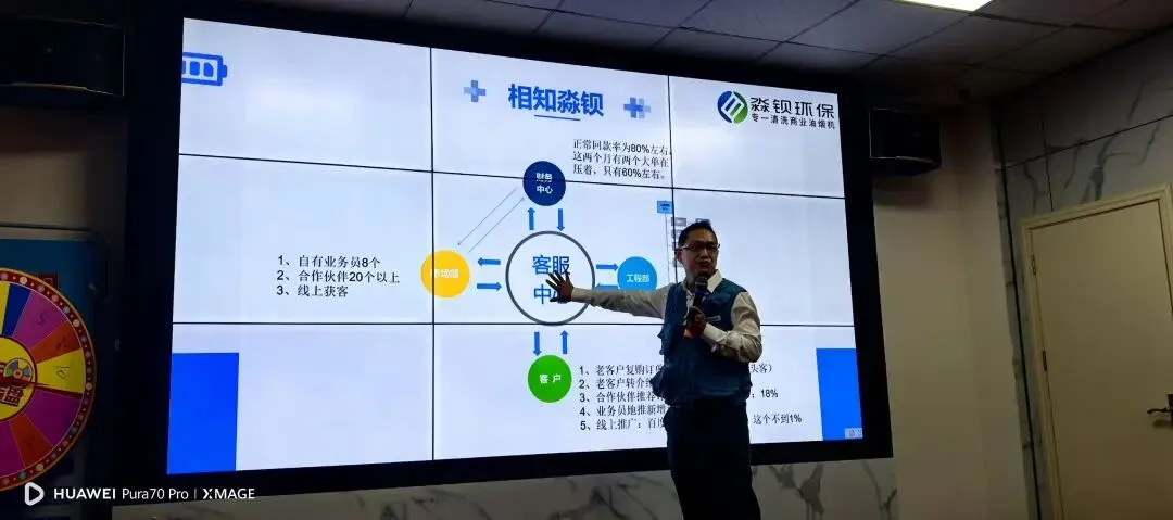 五、18日上午谢总分享的自己企业管理(市场板块、价格体系板块、客服板块、施工板块、团队打造品牌文化板块)所做的努力和改变感受很大。晚上又观摩了淼钡环保市场部内培会对培养人才激发积极性方面深受启发1、深深的被淼钡的企业文化所感染,感受到了团队的力量、员工把企业当家的良好氛围、极高的自驱力、主人翁精神和为自己干的意识2、被谢总独特的经营思路和做事的格局胸怀所吸引,一个企业发展好不好,很大程度决定于老板,祝淼钡发展越来越好3、联盟为我们提供了参观科蓝环保和洗碗哥等相关关联产业企业的机会,开拓了眼界,打开了思路,增加了后期为客户提供多元化服务的可能性,可进一步提高客户粘性和忠诚度4、有幸感受淼钡企业顾问曾老师带来的思想点拨,‘’因道术‘’,‘’老板,老总,老师‘’的理念植入心底,可以说这是一项增值服务和意外收获,并深度理解淼钡如此优秀的原因之一5、我们正在经历的,就是你们曾经走过的路,感谢各位优秀的老板的无私分享和倾囊相授,在一些具体问题的解决和处理上我受到了启发。1.日后定期组织交流学习,在订单获取,市场开拓,商务公关,客户管理,团队搭建管理,降低施工风险,安全把控,公司化发展运营,经营思路拓展,施工技术,售后处理,施工物料药剂,上下游互动链接,老板个人提升等方面持续深耕和发力,能为盟友单位带来更多更好更精彩更高质量的内容和交流学习机会
