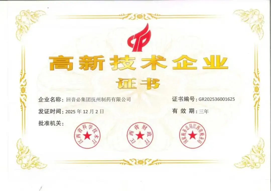 回音必抚州制药近日再次通过国家高新技术企业认定,自2016年首次获评以来已连续三次获得该项认可。公司成立于2003年,始终专注于化学原料药及制剂的研发与生产,坚持将科技创新作为发展核心,持续完善研发组织管理,加强科研队伍建设,并不断加大研发投入。