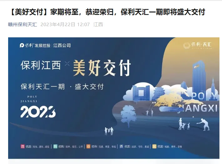 据悉,作为赣州经开区的标杆宜居社区,保利天汇是央企保利发展在赣州打造的 “天字系” 高端住宅项目,位于赣州经开区金坪路与华裕路交汇处,属于经开区核心居住板块,小区分三期建设,陆续完成交付。