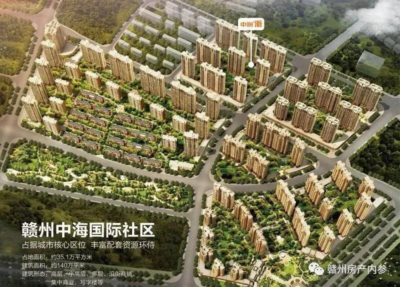 ▲ 赣州章江新区中海国际社区效果图,包括多个地块