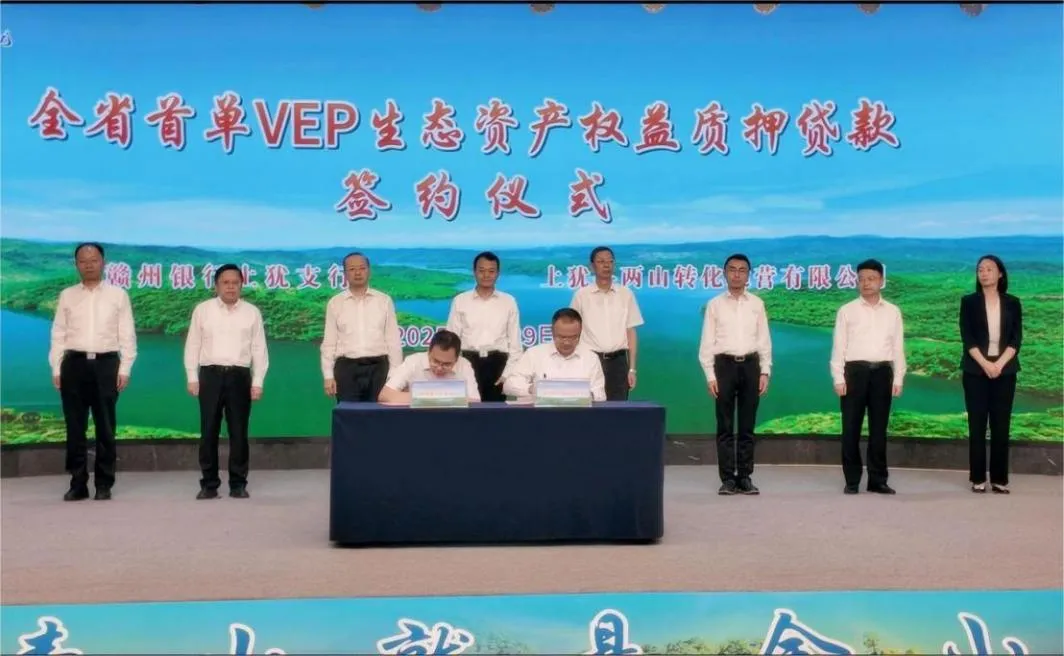 5月29日,全省首单VEP生态资产权益质押贷款签约仪式在上犹县举办,在我校科研团队积极助力下,上犹县通过推动VEP核算成果与金融机构、生态产业入园企业签约,成功落地全省首单2亿元 VEP 绿色金融贷款。