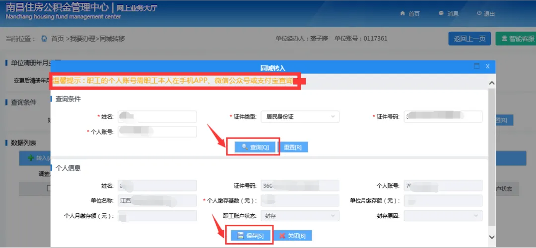 单位经办人在操作“同城转移”成功后,别忘了给职工操作“启封”和“启封调基”哟!
