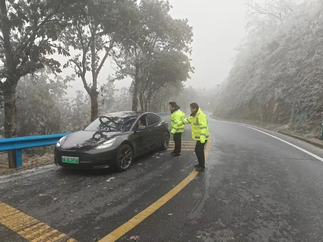 在急弯、陡坡等易结冰重点路段,已布设警示标志牌20块、安全墩200个,加强现场引导,守护出行安全。
