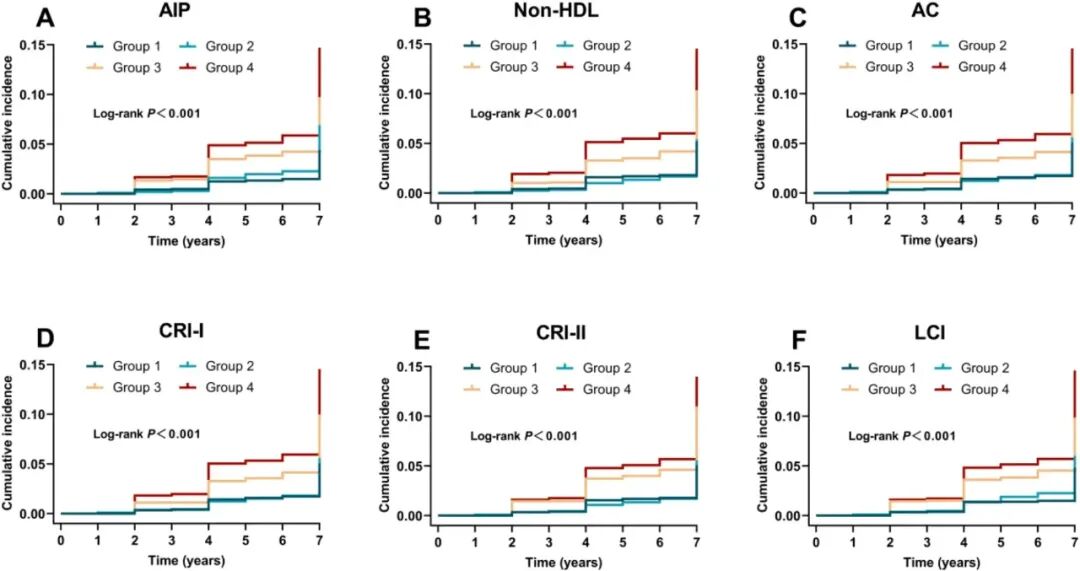- 非传统脂质参数:包括 AIP(lg (TG/HDL-C))、Non-HDL-C(TC-HDL-C)、致动脉粥样硬化系数(AC)、Castelli 指数 I/II、脂蛋白联合指数(LCI),以中位数为界分为高 / 低水平组;