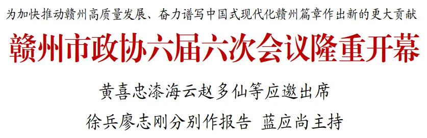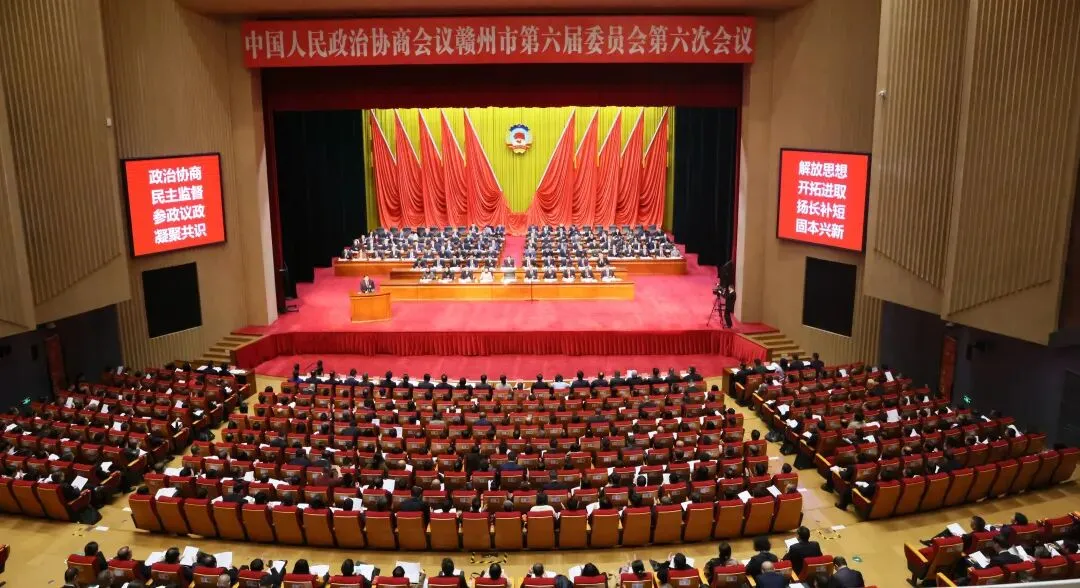 同心聚力谋发展,携手奋进谱华章。1月20日,中国人民政治协商会议赣州市第六届委员会第六次会议在赣州大剧院隆重开幕。来自全市各党派、各界别、各条战线的政协委员齐聚一堂,履行政治协商、民主监督、参政议政职能,凝聚共识,共商良策,为加快推动赣州高质量发展、奋力谱写中国式现代化赣州篇章作出新的更大贡献。