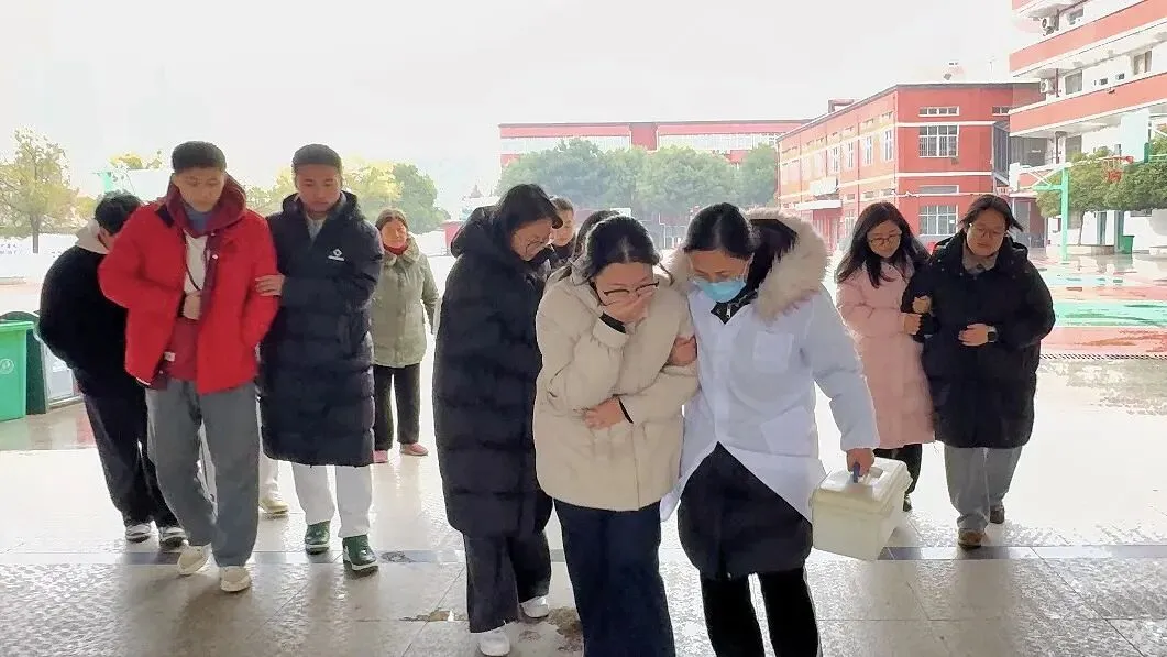 与此同时,其他多个班级也相继有学生出现类似不适症状,相关教师陆续向值班行政反馈。经校医初步判断,学生身体不适疑似由食物中毒引起,随后相关负责人与校医协商,统一组织将学生送往校医室接受进一步的专业诊疗。