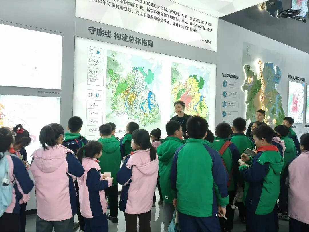 随后,同学们先后走进“历史厅”“总体规划厅”与“产业厅”。在历史厅,领略江西历史名流与南昌发展沿革,感受“人杰地灵”的底蕴;在总体规划厅,家乡发展巨变与未来愿景让人自豪,大家提笔记录发展蓝图;在产业厅,各区产业规划与成果直观呈现,让同学们理解“创新宜业,强产兴域”的内涵。