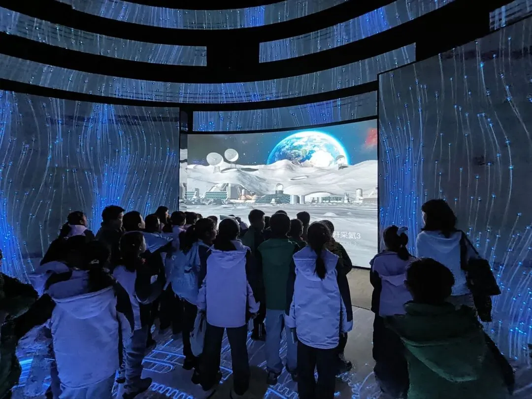未来厅内,同学们唤醒未来罗盘,通过多元屏幕直面智慧城市中枢,沉浸式体验南昌未来10年、20年的发展,不少人在笔记中写下奋斗目标与美好期许。