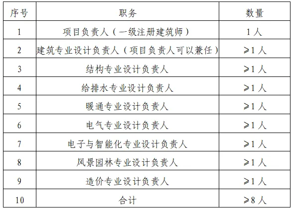注:各专业负责人须具备相关专业设计中级(含)以上职称或国家一级注册执业资格证书。