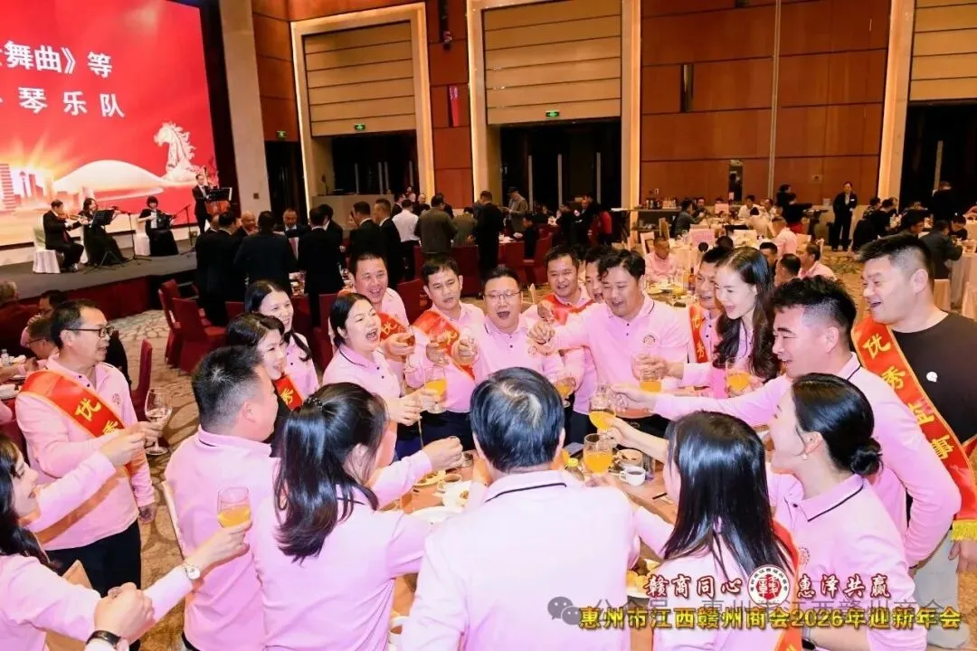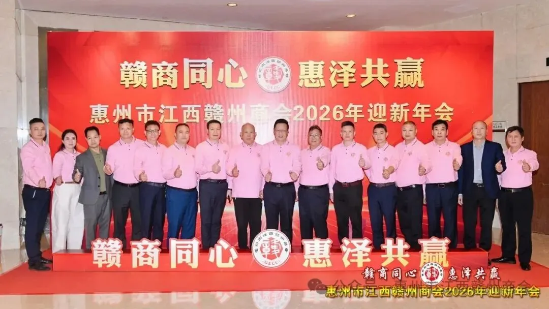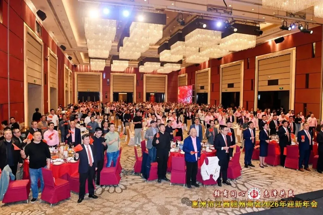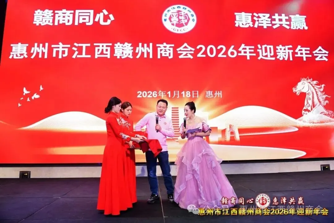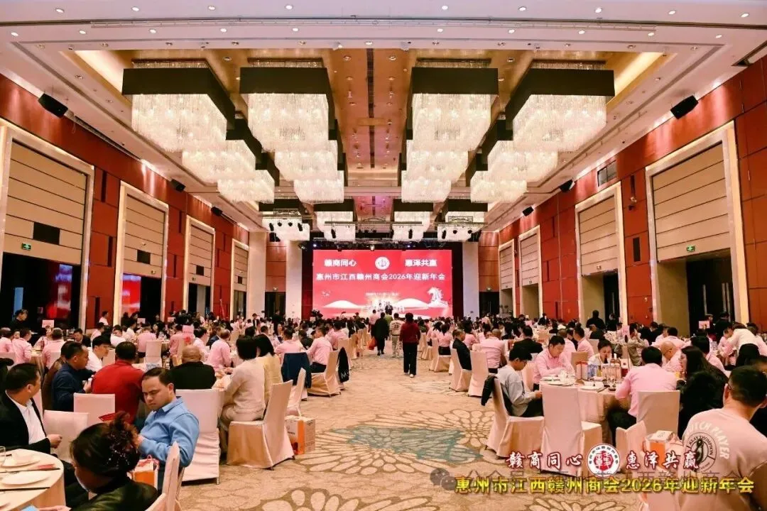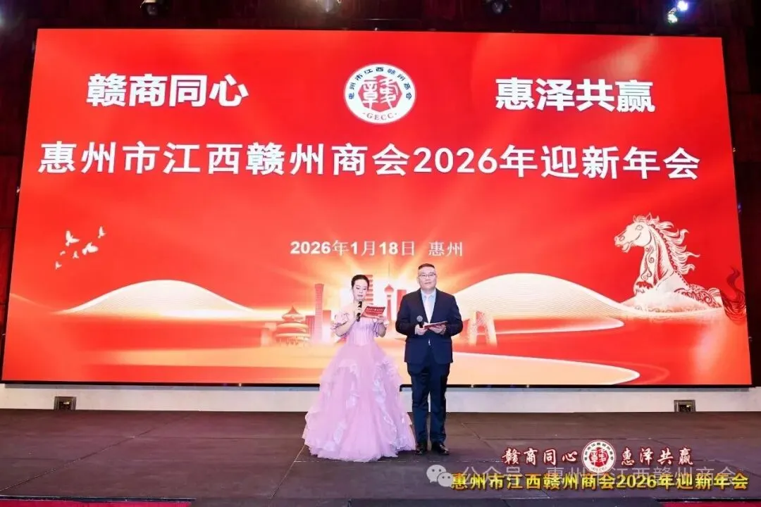 乡音乡情聚鹅城,同心同梦续辉煌。2026年1月18日,惠州市江西赣州商会“赣商同心 惠泽共赢”2026年迎新年会盛大举行!来自惠州市机关、医疗卫生界、教育界的乡贤代表,以及江西商会、江西各市商会、赣州各县区商会的代表与商会会员共360余人欢聚一堂,在欢声笑语中共叙乡情友谊,共话发展蓝图。