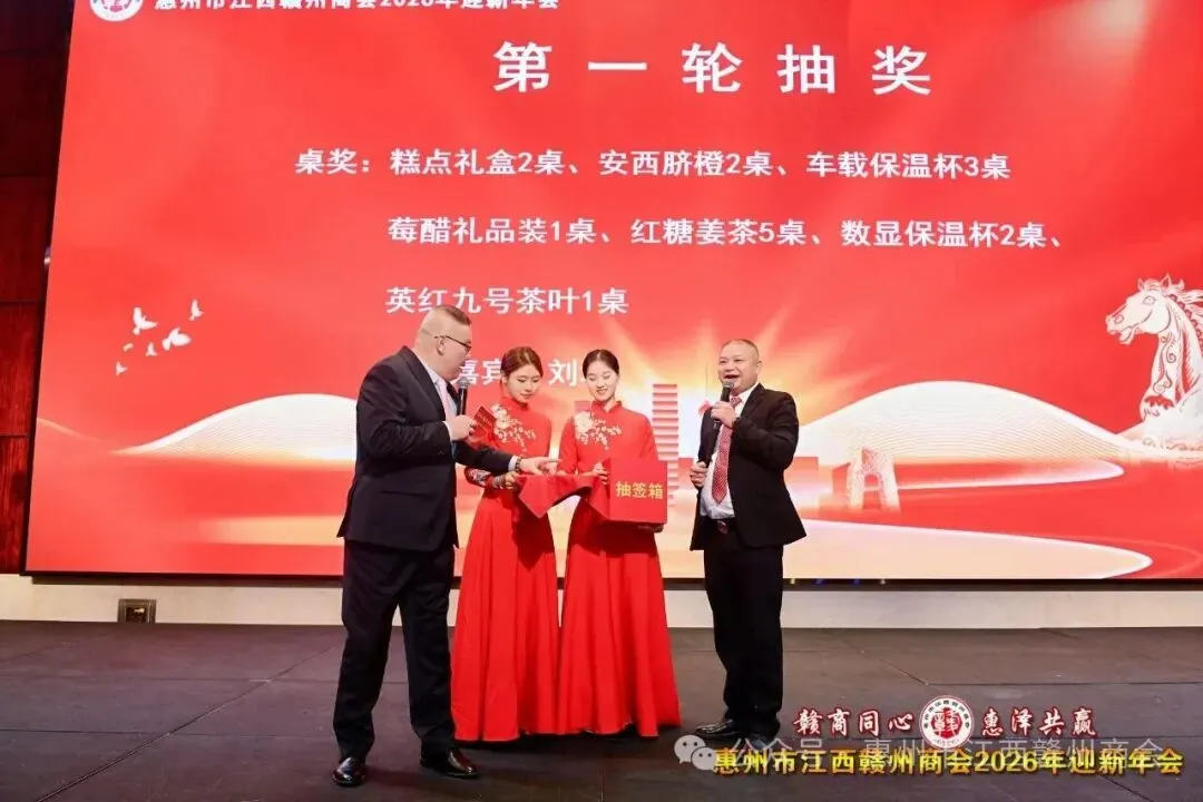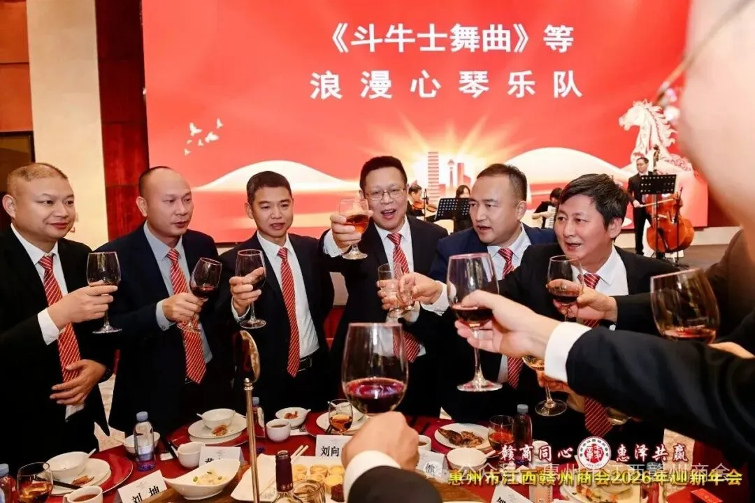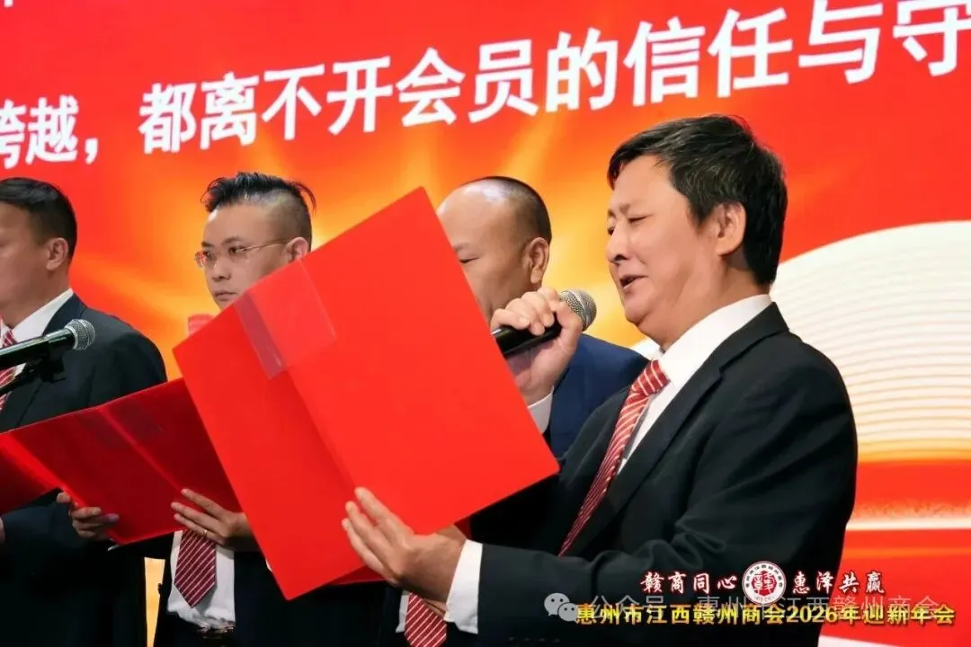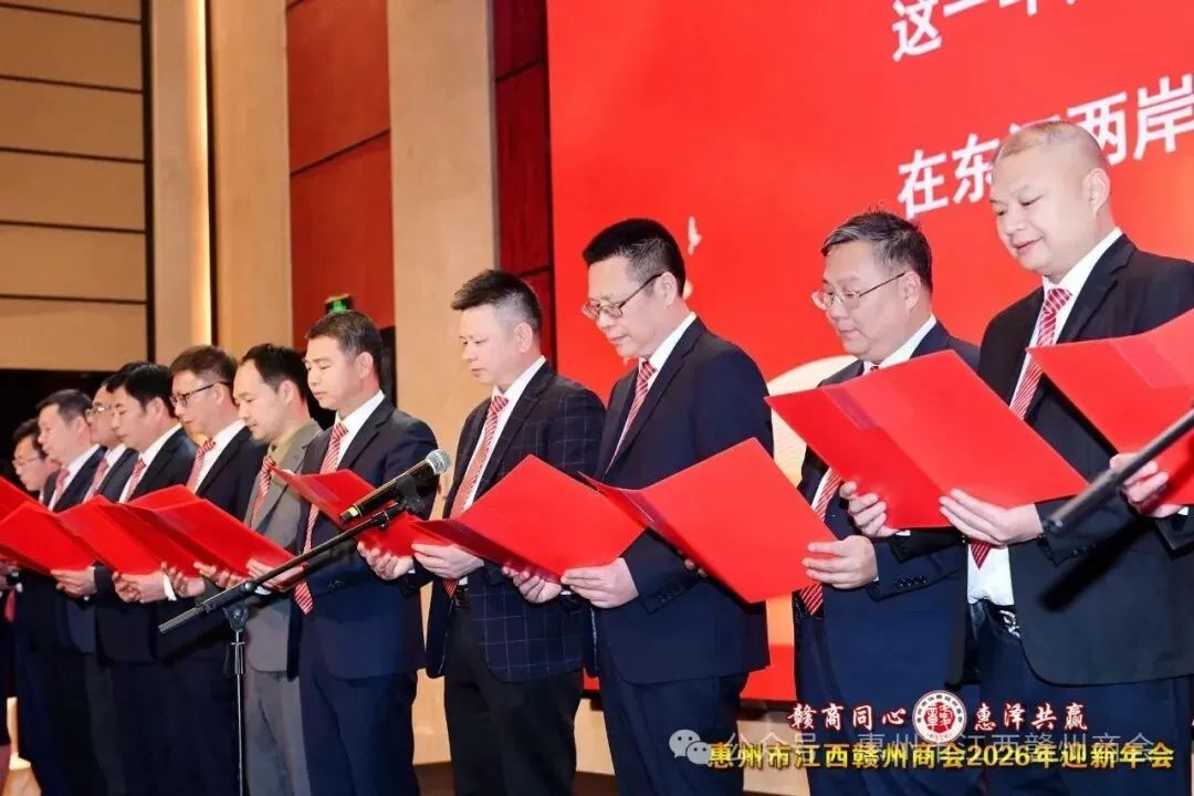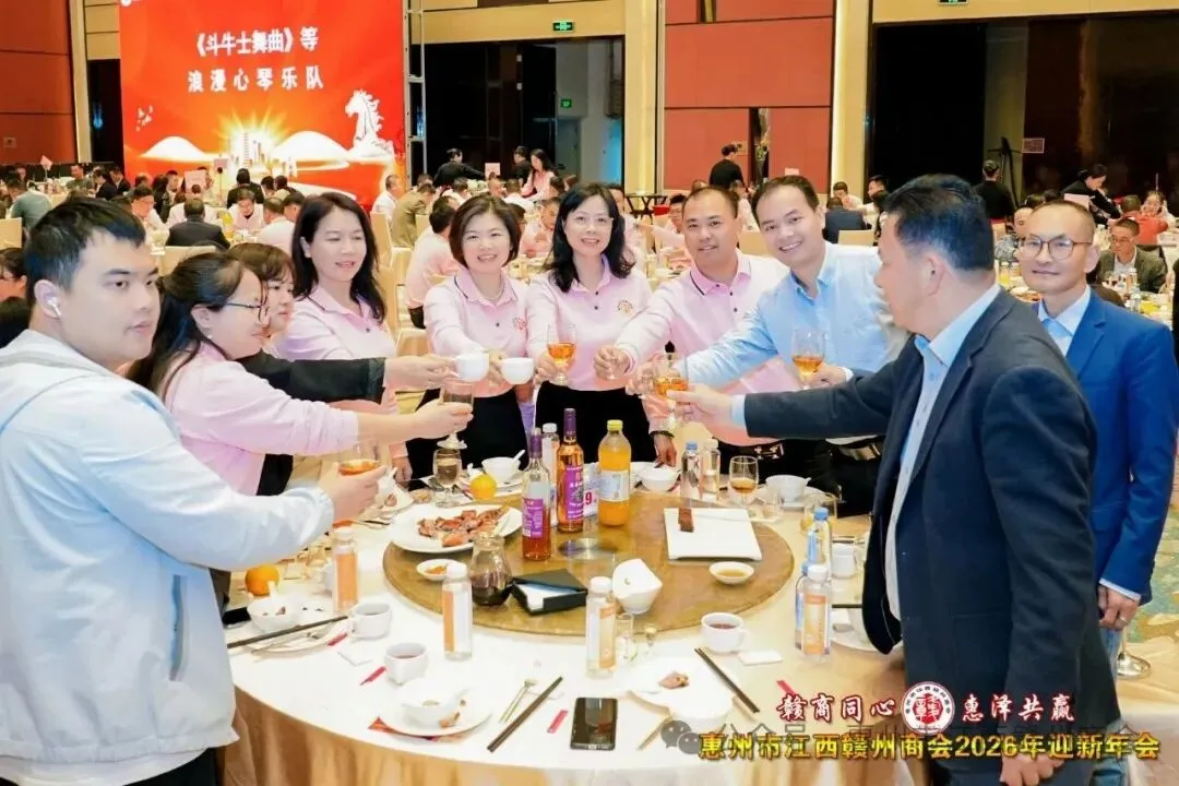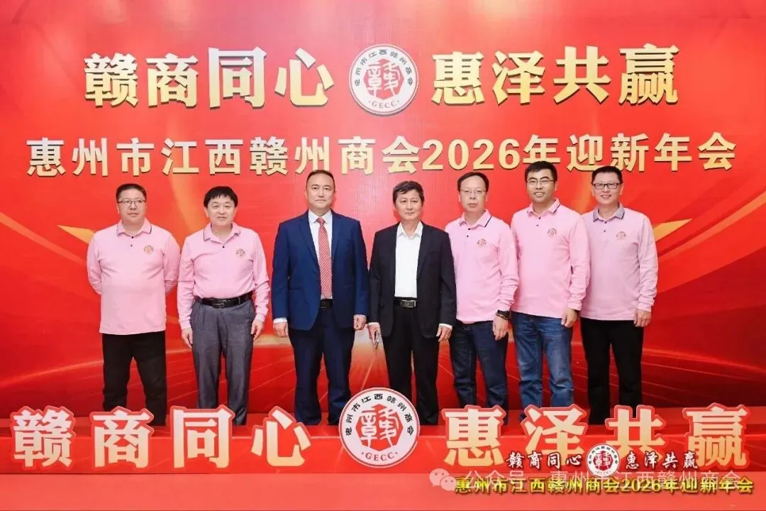 乡音乡情聚鹅城,同心同梦续辉煌。2026年1月18日,惠州市江西赣州商会“赣商同心 惠泽共赢”2026年迎新年会盛大举行!来自惠州市机关、医疗卫生界、教育界的乡贤代表,以及江西商会、江西各市商会、赣州各县区商会的代表与商会会员共360余人欢聚一堂,在欢声笑语中共叙乡情友谊,共话发展蓝图。