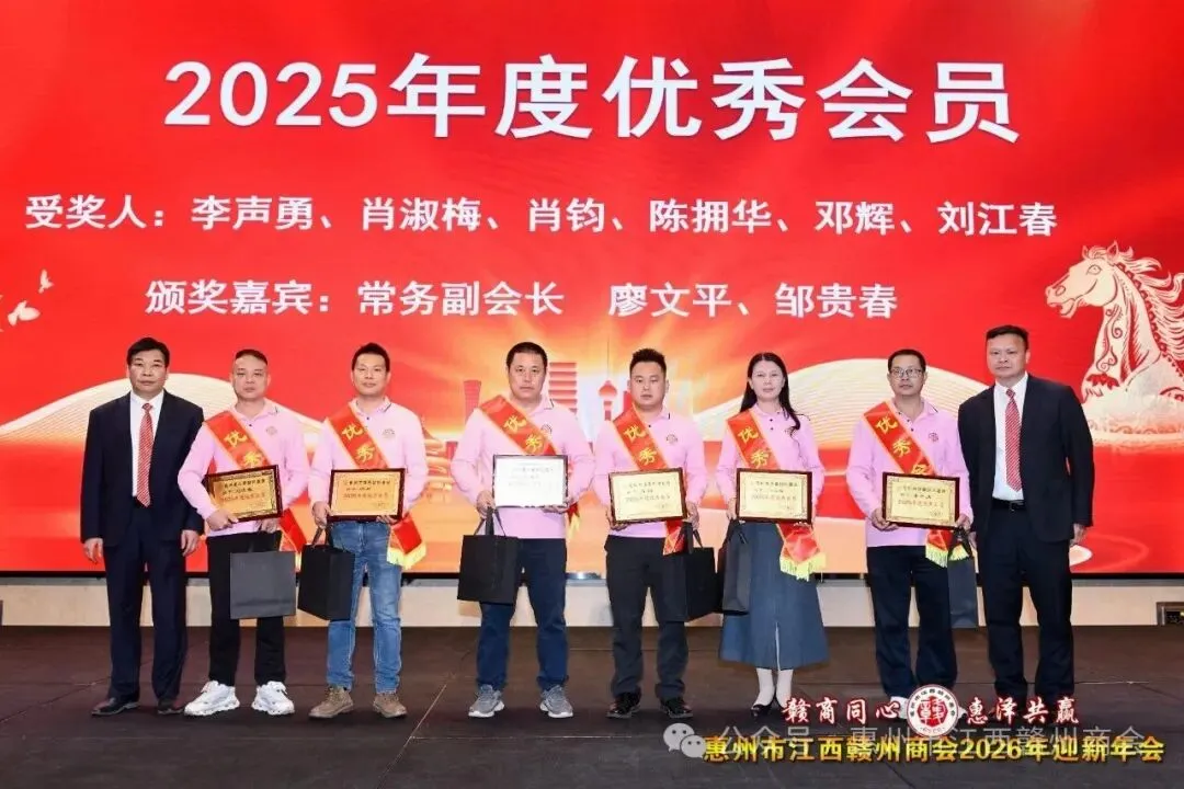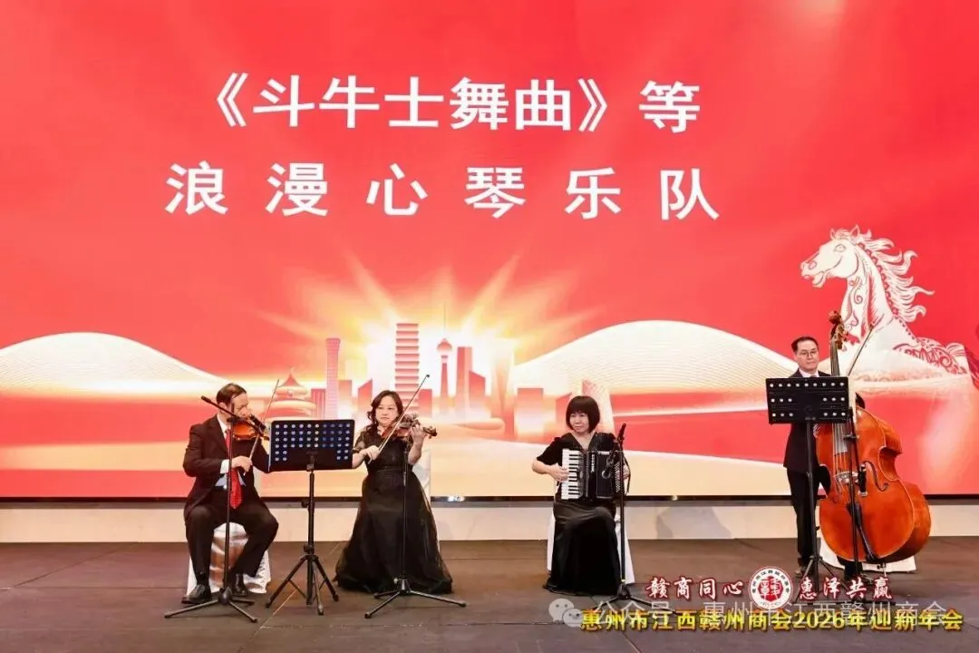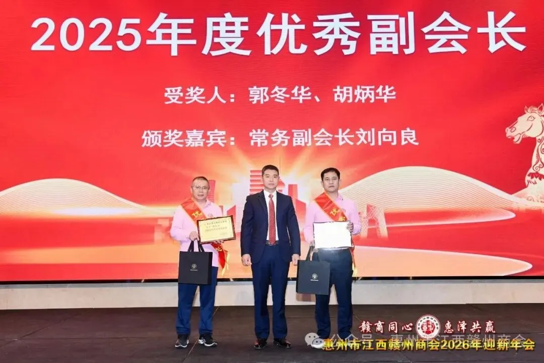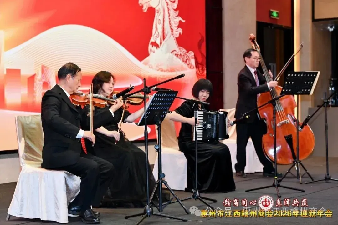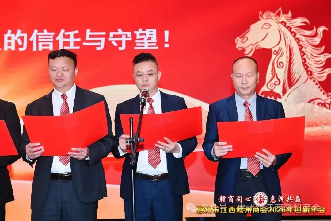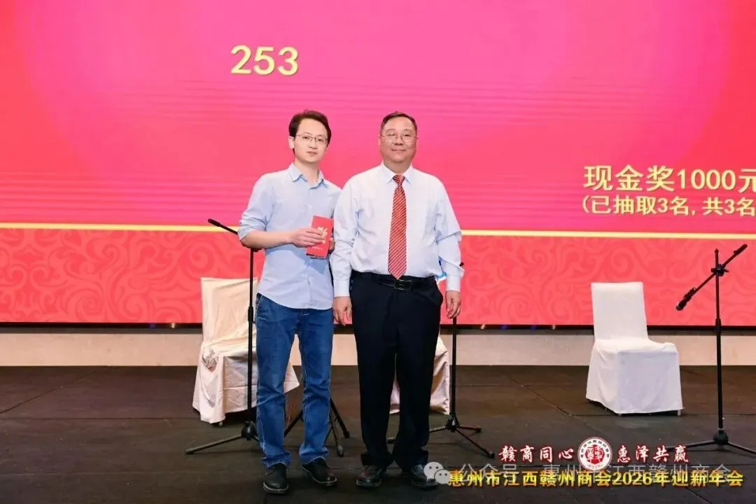 乡音乡情聚鹅城,同心同梦续辉煌。2026年1月18日,惠州市江西赣州商会“赣商同心 惠泽共赢”2026年迎新年会盛大举行!来自惠州市机关、医疗卫生界、教育界的乡贤代表,以及江西商会、江西各市商会、赣州各县区商会的代表与商会会员共360余人欢聚一堂,在欢声笑语中共叙乡情友谊,共话发展蓝图。