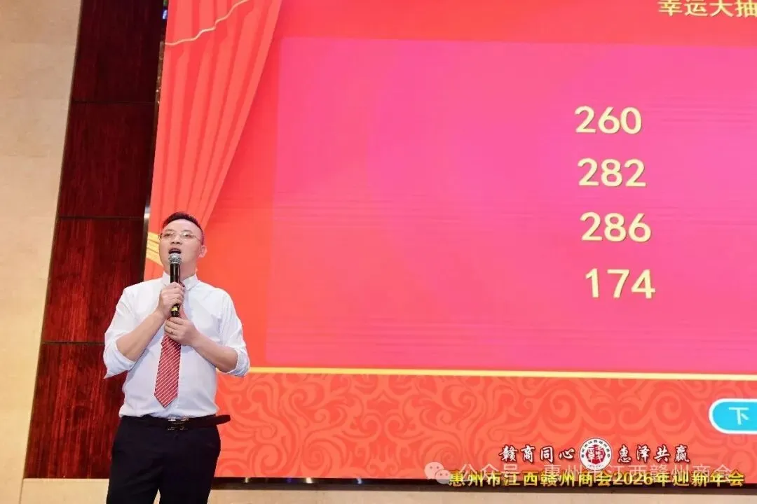 相聚的时光虽短,情谊的绵长无限。伴随着《难忘今宵》的悠扬旋律,本次迎新年会圆满落下帷幕。此次年会不仅是一场凝聚乡情、共享喜悦的团圆盛会,更是一次凝聚力量、共启新程的动员大会。新的一年,惠州市江西赣州商会将继续秉持团结奋进的精神,携手全体会员与乡贤,以厚德实干为基,以创新发展为翼,在大湾区建设的浪潮中勇立潮头,书写赣商共赢发展的崭新篇章!