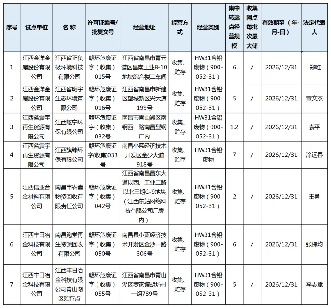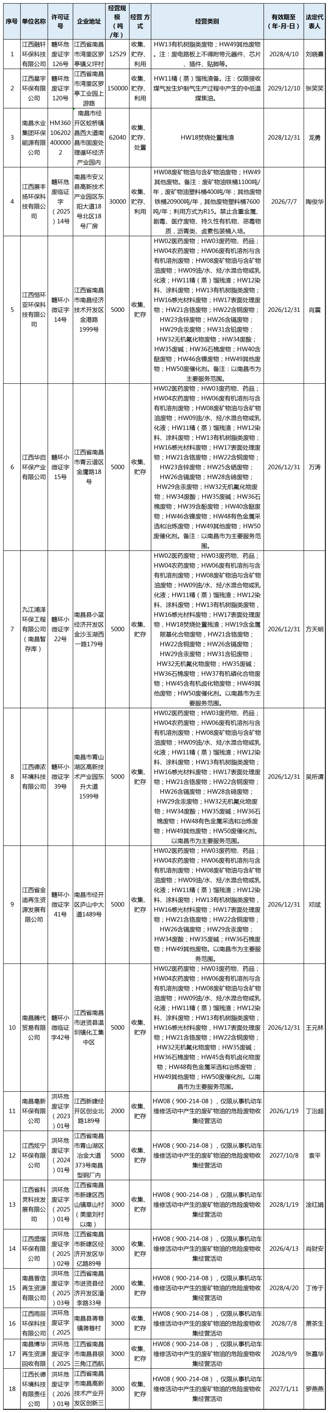 南昌市《危险废物经营许可证》持证单位名单(8月29日更新)