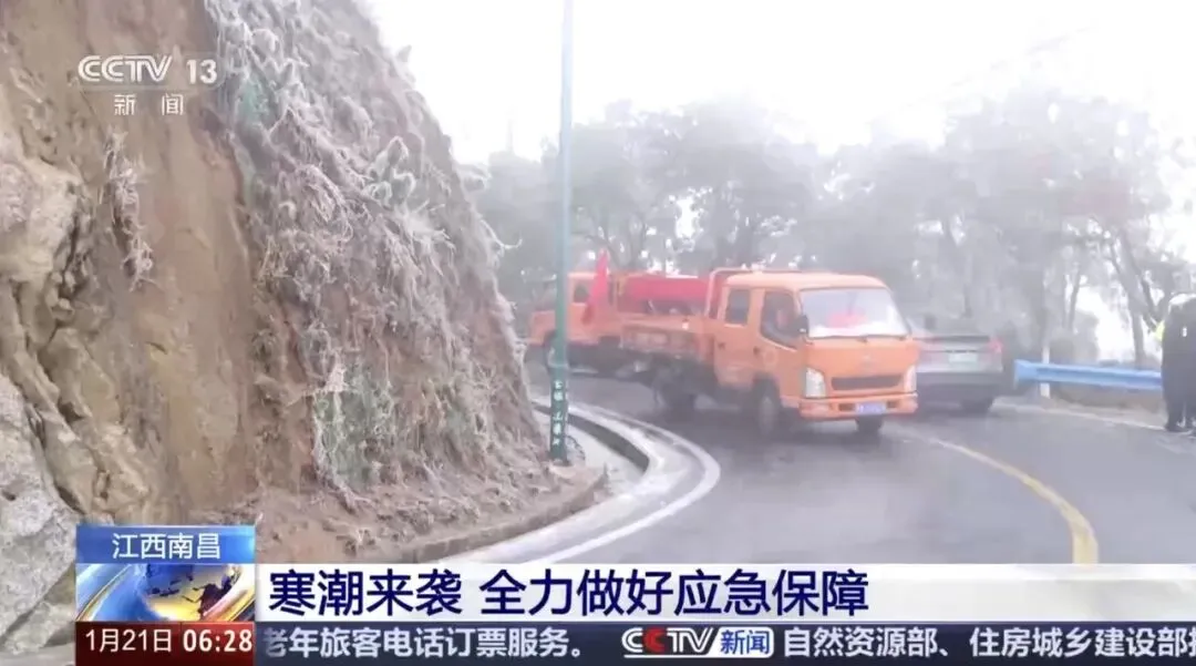 >央视关注南昌应对寒潮:梅岭山区道路铲冰除雪保畅通