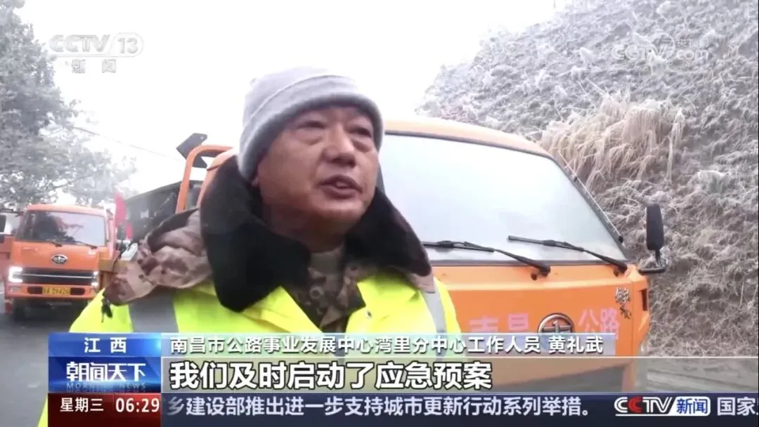 央视关注南昌应对寒潮:梅岭山区道路铲冰除雪保畅通