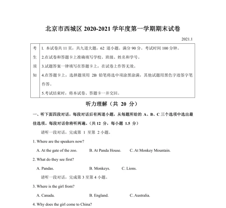 1北京市西城区2020-2021学年七年级上学期期末考试英语试题.pdf